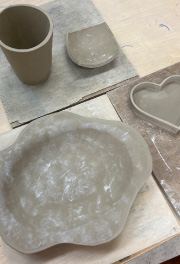 雑誌の撮影をきっかけに陶芸教室に通うようになりました。今回の撮影の前にも友人と一緒に行って。パスタ皿やアクセサリーケース、マグカップを作ったりしています。いつもは、信楽焼などに使われる強度のある赤土を使っていて、今回の撮影ではじめて手捻りの手法にチャレンジしました。手捻りは自由度が高くて、自分が思い描いた造形を追求していくのがおもしろいですね。幼い頃から手を動かしているのが性に合っていて、無心で没頭する時間がリフレッシュになっています。