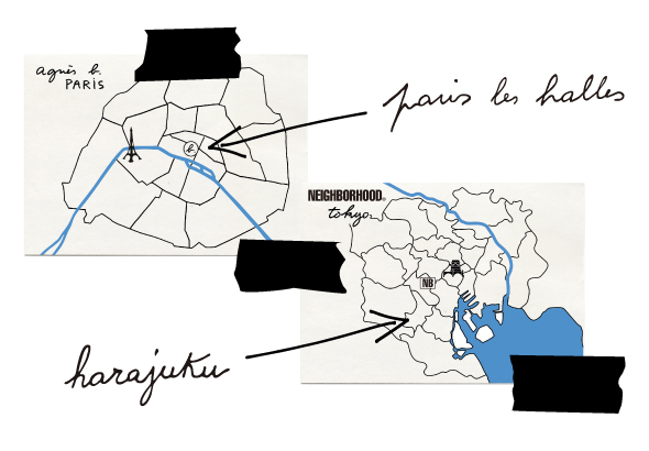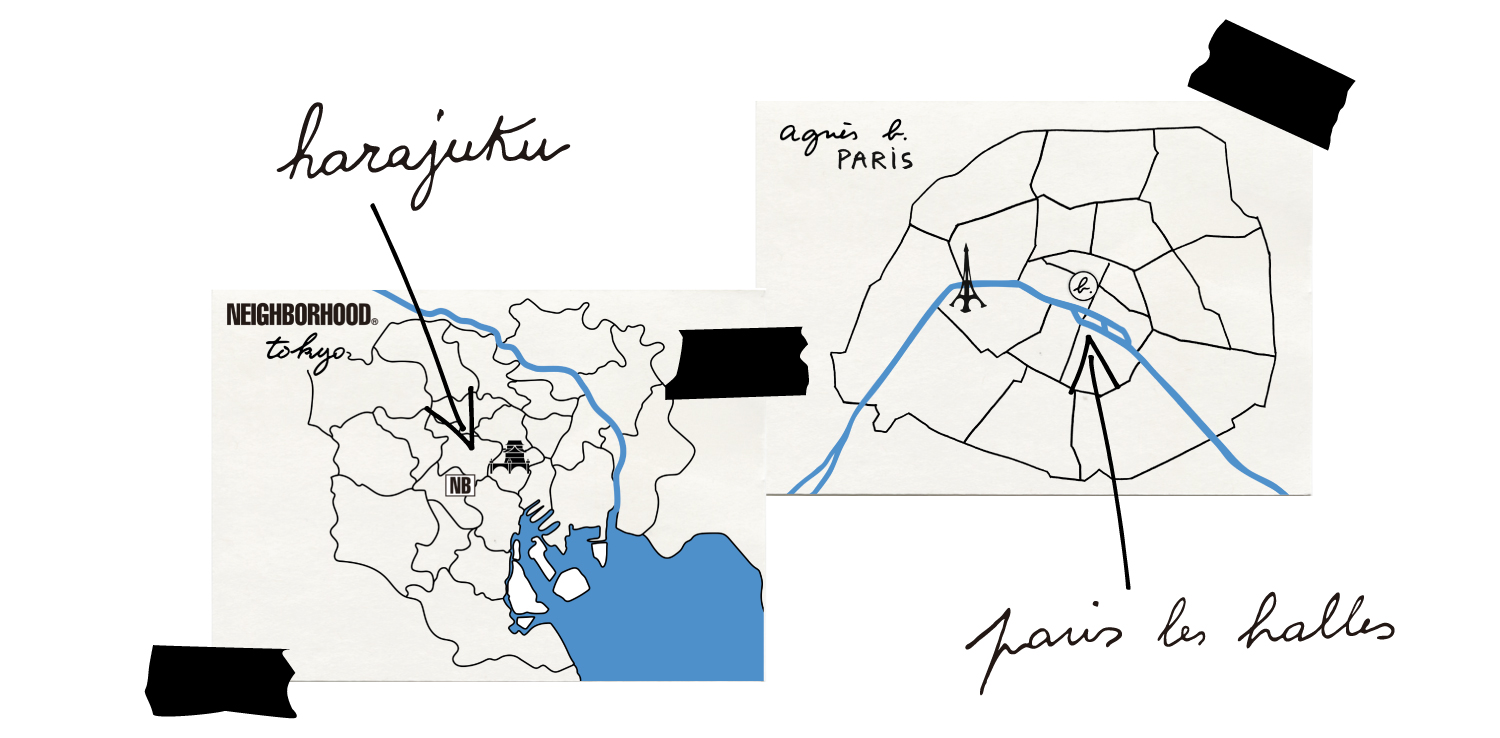 アニエスベーにとってレ・アールは、ブランドの原点であり数々のカルチャーと出会いを生み出してきた象徴的な場所です。NEIGHBORHOOD®もまた、原宿をホームグラウンドとし、独自のスタイルと価値観を育んで常に世界への発をしてきました。