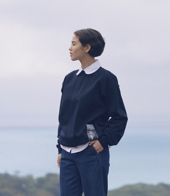 “j’aime la mer! (海が好き!)”というアニエスのストレートなメッセージと、人びとの生活が海・水と共にあり、より豊かになる文化の創造を目指すヘリーハンセンのフィロソフィーとが共鳴し生まれたコラボレーション第2弾では、暖かさと快適性を兼ね備えた新素材「Lifa」を使用したスウェットやカーディガンが登場。