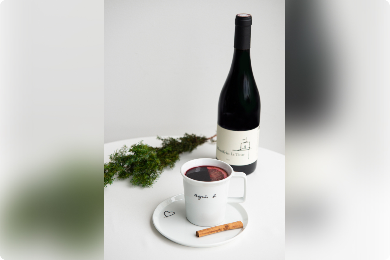 アニエスベーの共同創業者で、アニエスの2人の娘の父親でもあるジャン・ルネ・ド・フルーリューがオーナーを務めるシャトー・ド・モンフランの赤ワインを使用。香り高いワインに程よい酸味を添えるボンヌママンのチェリージャムのほかスパイスなどを煮詰めてつくります。