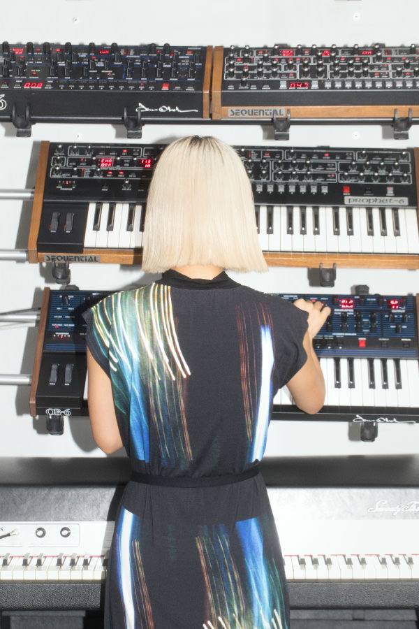 パフォーマンスのときはすべてをコントロールするけれど、逆に曲づくりのときはコントロールしすぎないようにしています。そうすることで、意図せずおもしろい音が生まれたりして電子機器ならではの魅力が発揮される。ピアノだったら、Cを押せばCの音になるけど、このシンセサイザーが実際に音を出すにはいくつかのステップが必要で。そのステップを入れ変えたりすることで、新たな音を見つけるのが好きなんです。