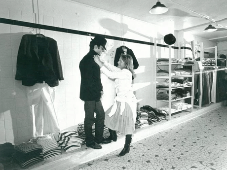 アニエスベーは最初のショップをパリのレアール地区にある古い肉屋を全面改装して開業しました。その地区は当時急激に発展している最中でした。この1号店は、オフィスやアトリエとしてだけでなく、表現の場、あるいは出会いの場としても使われました。壁には、グラフィティや、様々なポスターが貼られ、鳥が自由に飛び回り、座って会話を楽しみ、音楽を聴くことができる場所でした。
