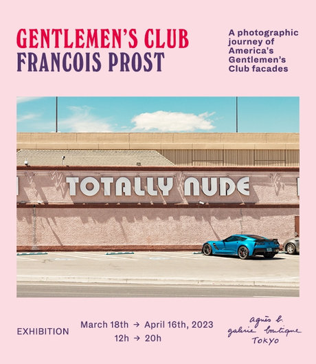 In 2019, François Prost drove east to west across the United States from Miami to Los Angeles to produce “Gentlemen’s Club”, a series of photographs of strip clubs facades. This exhibition will feature 29 works from “Gentlemen’s Club” (Fisheye, 2021), a book of photographs documenting the series, as well as a video documenting the road trip.