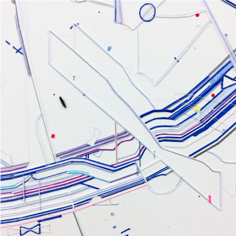 ドローイングという表現領域を拡張すべく、紙や壁の上に糸をグルーガンで張る独自の手法でシリーズ: Bug reportを制作してきた。イメージを成す二種類の線: 糸の張った『直線』と緩んだ『曲線』は比喩的にシステムのバイナリな構成要素を成す。一連のシリーズを通じて、線を付け加えるたびに集積する亀裂(バグ)をレポートすることで暫定的な現実の認識を試みてきた。構築と瓦解の様相をもつ“途上の光景”を。