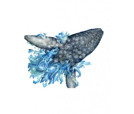 世界公募で選出され、2017年1月にグアムから日本を目指してタラ号に乗船。2ヶ月半に及ぶ海上での経験は、海の生物が織りなす生命の循環と共生のイメージをより具体的に大小島に育むことになりました。そのイメージは、今回展示する、タラ号乗船中に制作されたドローイング9点を生み出し、やがて「鯨の目」シリーズと呼ばれる、より大胆で大掛かりな作品群へと結実しました。