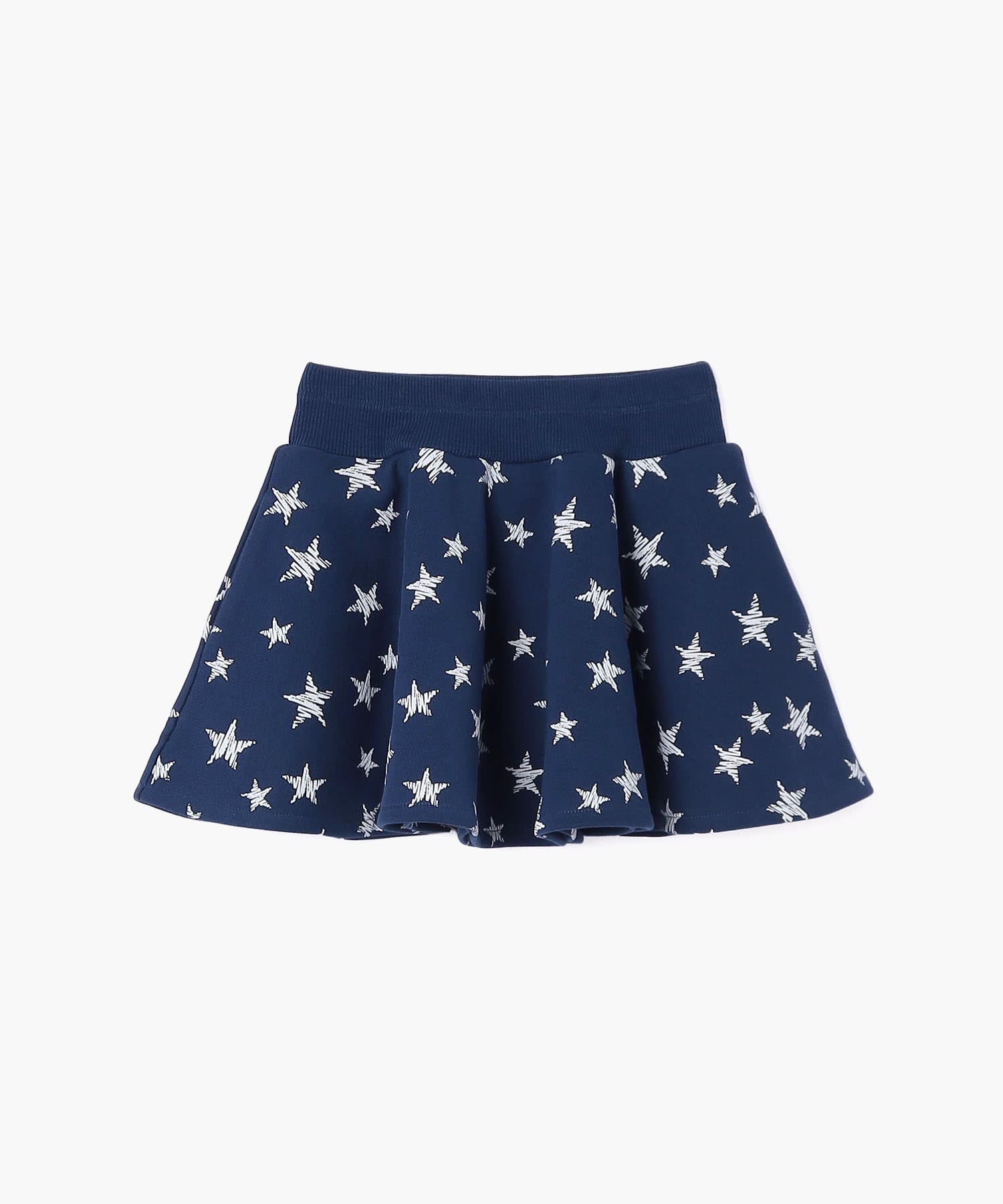 落書き風のスター柄がポイントになって、シンプルなトップスとのコーディネートもポップに仕上がるスウェットスカート。ふわっと広がるフレアシルエットで女の子らしくに決まるアイテムは、デイリーなガーリーカジュアルにぴったり!