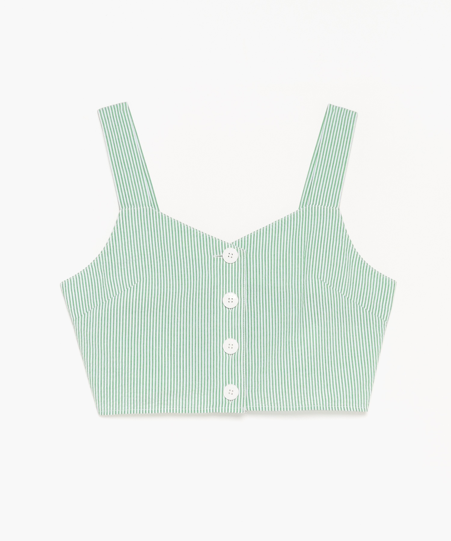 フロントボタンがポイントのストライプ柄ビスチェ。