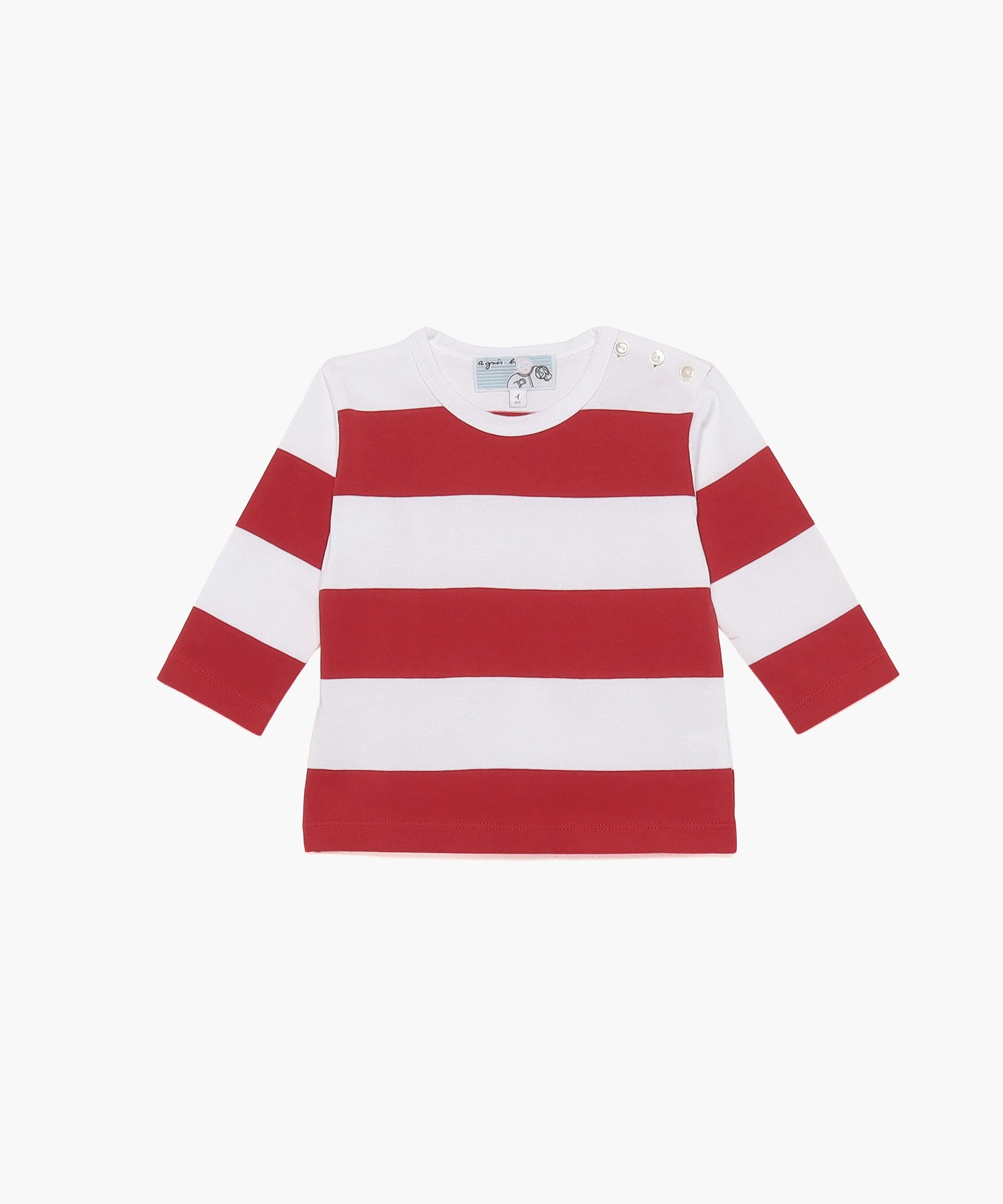アニエスベー定番のボーダーTシャツ。ラガーシャツのようなワイドボーダーが印象的。コーディネートしやすいアイテムなのでまずは1枚手に入れておくのがオススメです。スリーシーズン活躍するロングスリーブはレイヤードスタイルにもお役立ち。ショルダー部分にボタンがつくことで着脱しやすくなっています。