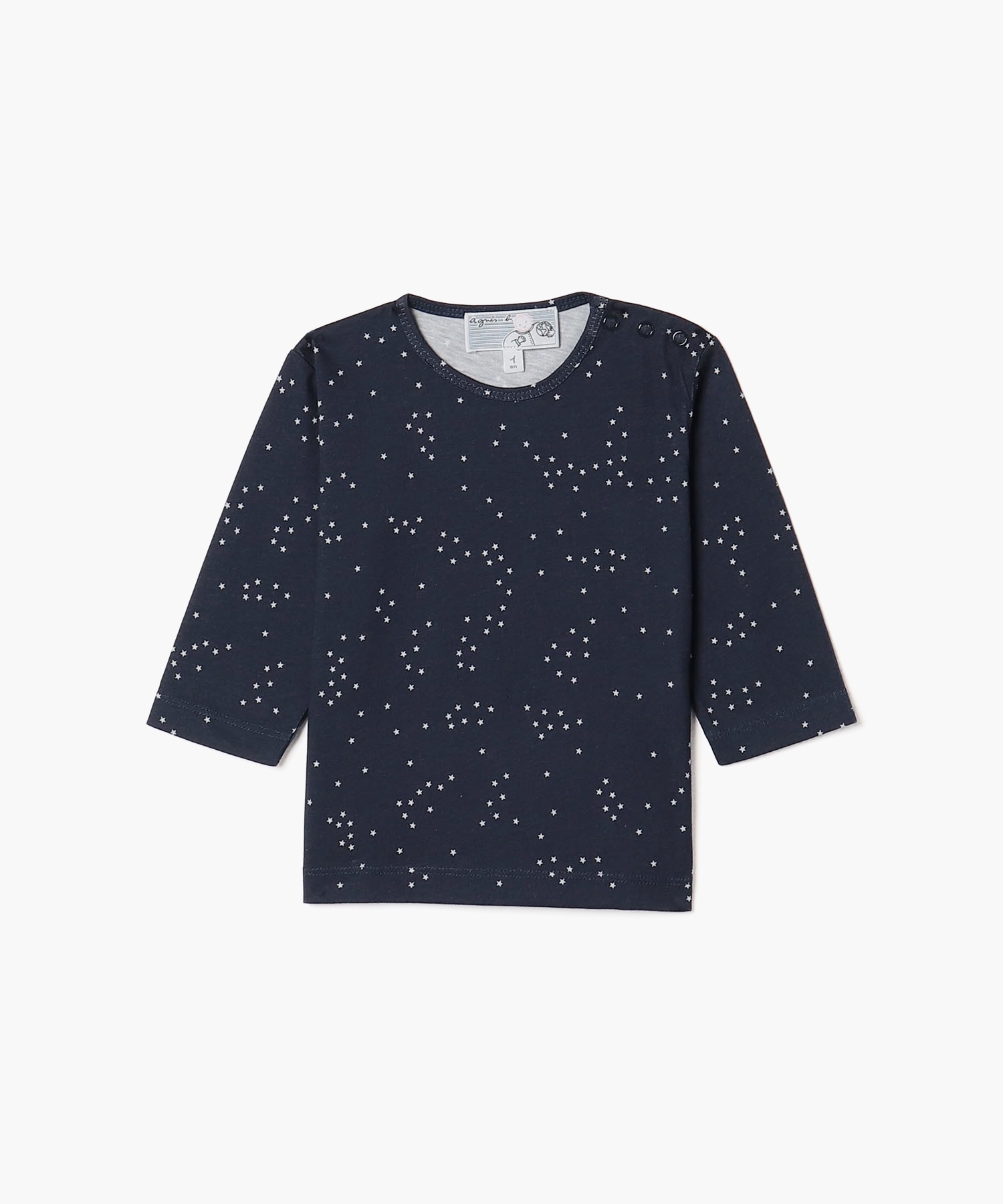 ランダムにきらめく星空をそのままファブリックに落とし込んだような、ロマンティックなカットソー。すっきりとしたベーシックなシルエットだからどんなボトムスとも合わせやすく、手持ちのアイテムとも着回せます。