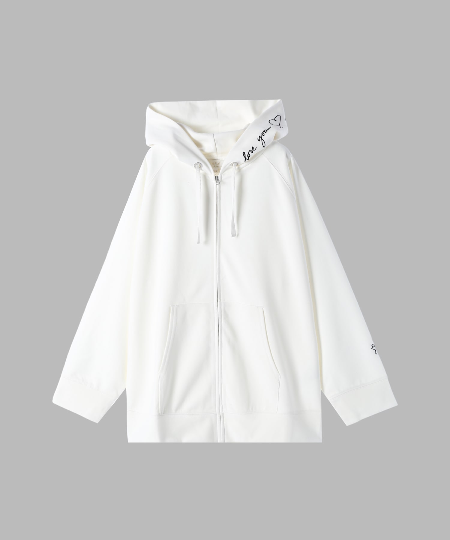 フードと袖の刺繍がポイントのジップアップフーディー。