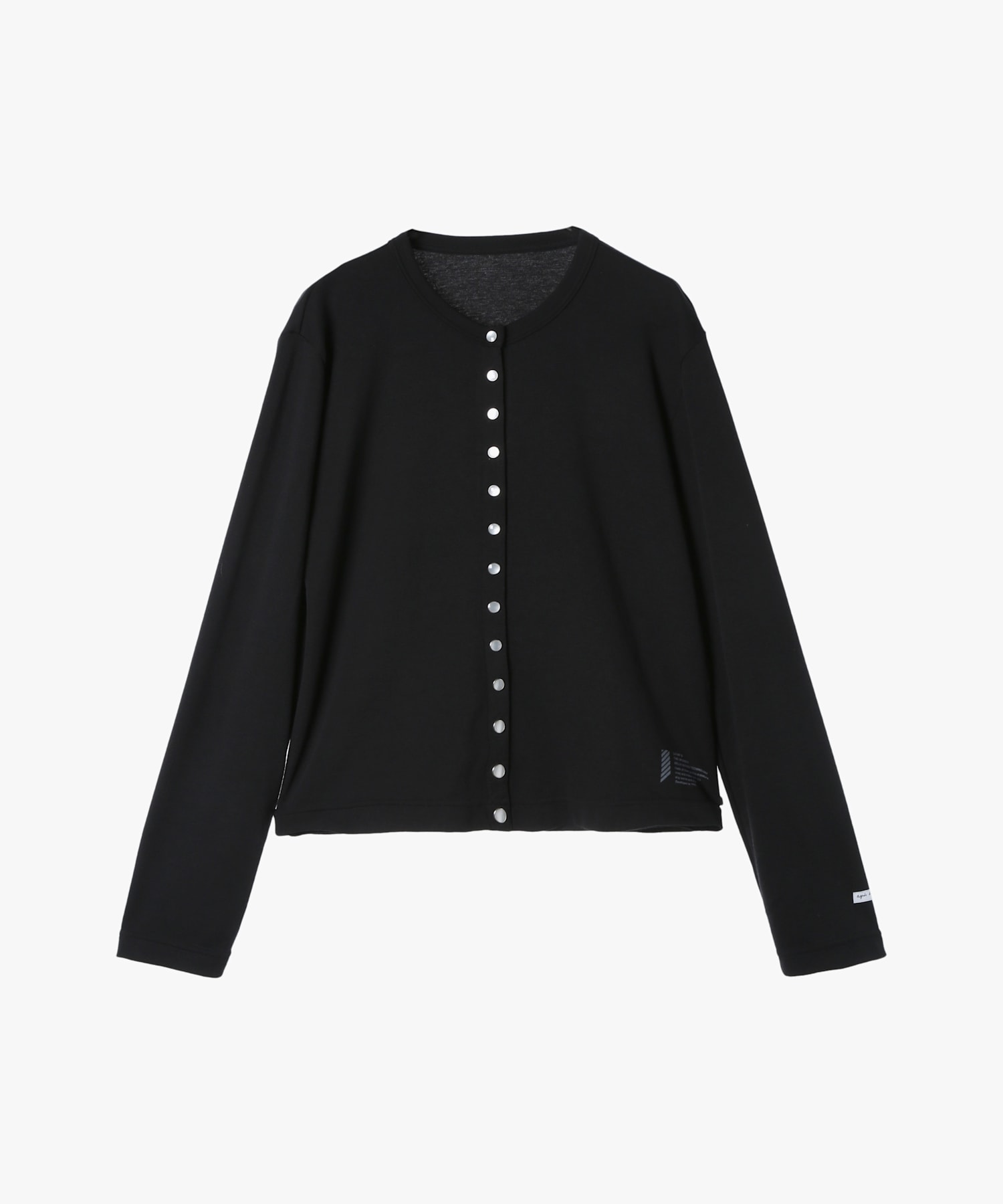 「1979年当時、アニエスベーはよくスウェットシャツを着ていました。ある夏の暑い日にふと、カーディガンを着て学校まで走っていた幼い頃を思い出し、このスウェットシャツの前を開けることを思いつきました。そしてスナップボタンがルネッサンスの服や、神父服のように狭い間隔で並んでいるようデザインし、カーディガンプレッションが生まれました。当初、カーディガンプレッションにはコットンのメルトン素材(裏起毛素材)が用いられ、直線的なカッティングに、丸襟で後ろに2つの調節用のタブがついていました。その後、キッズとメンズラインでも展開し、また、メルトン素材をレザーに変えたり、半袖にしたり、ビスチェにしたり、ウエストを絞ったりと、絶えず進化させ続けてきました。カーディガンプレッションは、独自的で時代を超えて愛されるアニエスベーの定番アイテムです。」