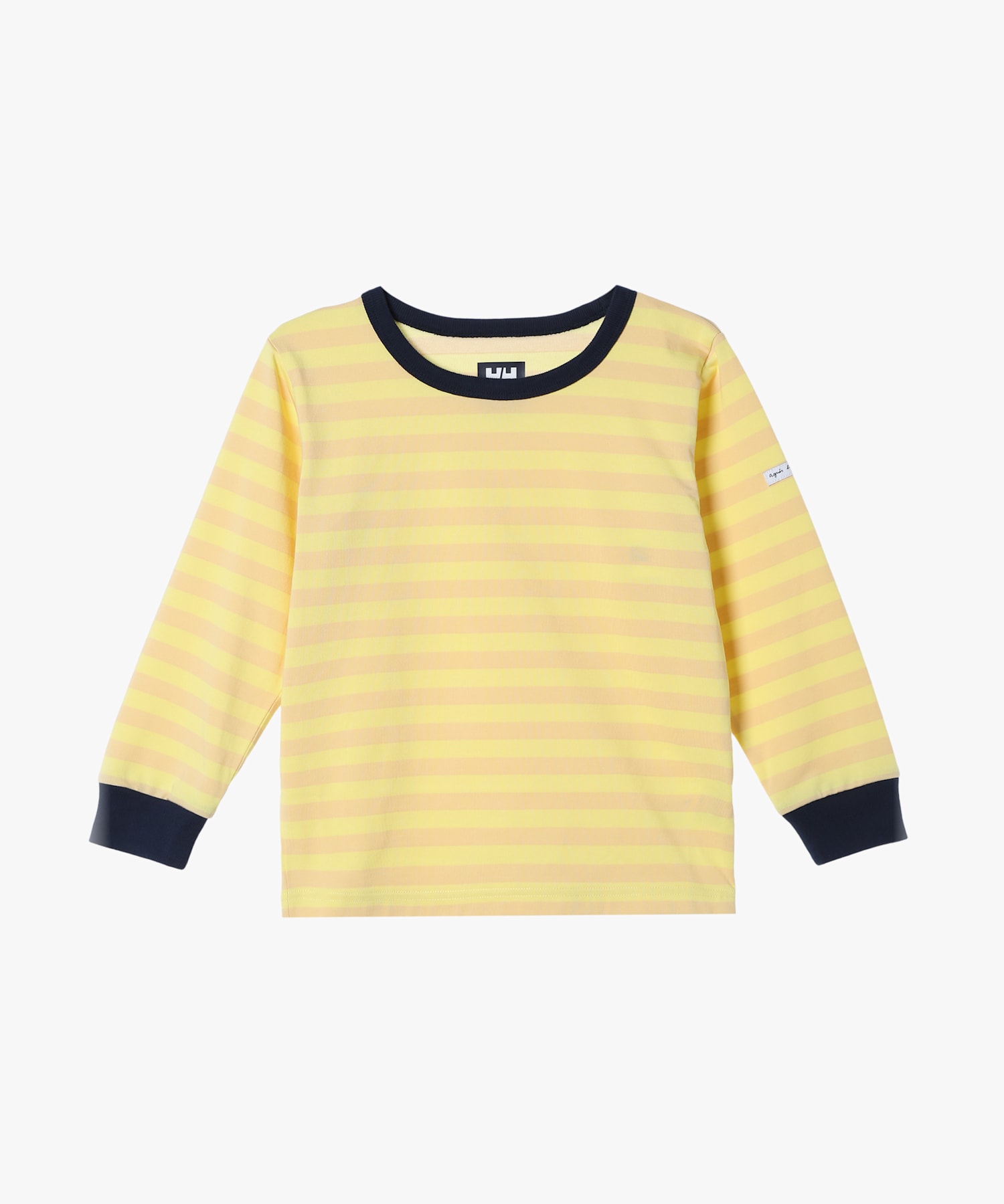 海由来の環境配慮型素材を採用した丸首のキッズボーダーTシャツ。