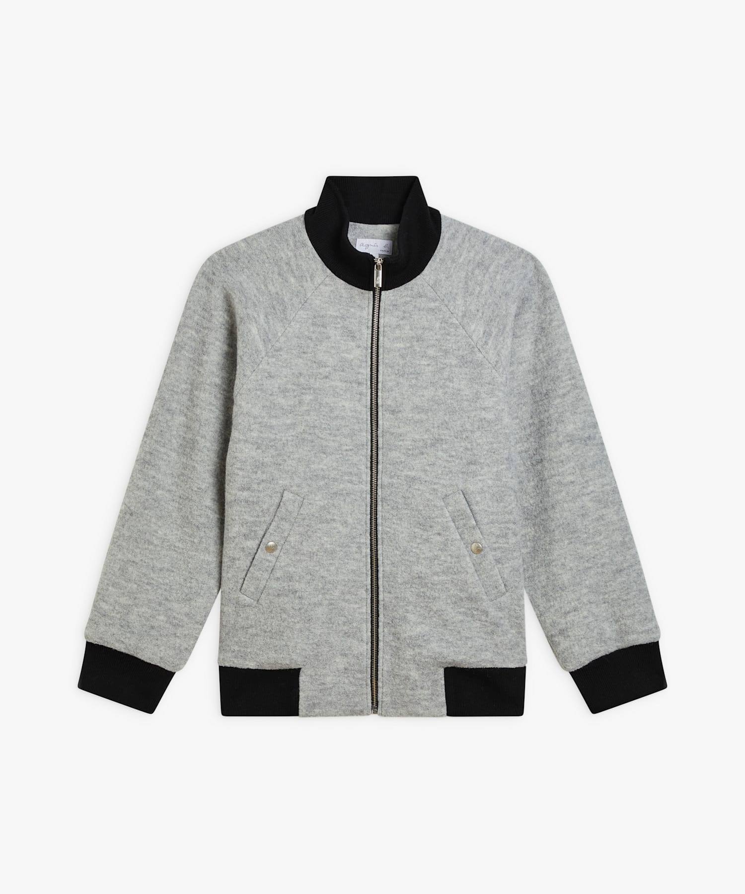 リブ編みのエッジが付いたジッパー付きの上品なジャケット。