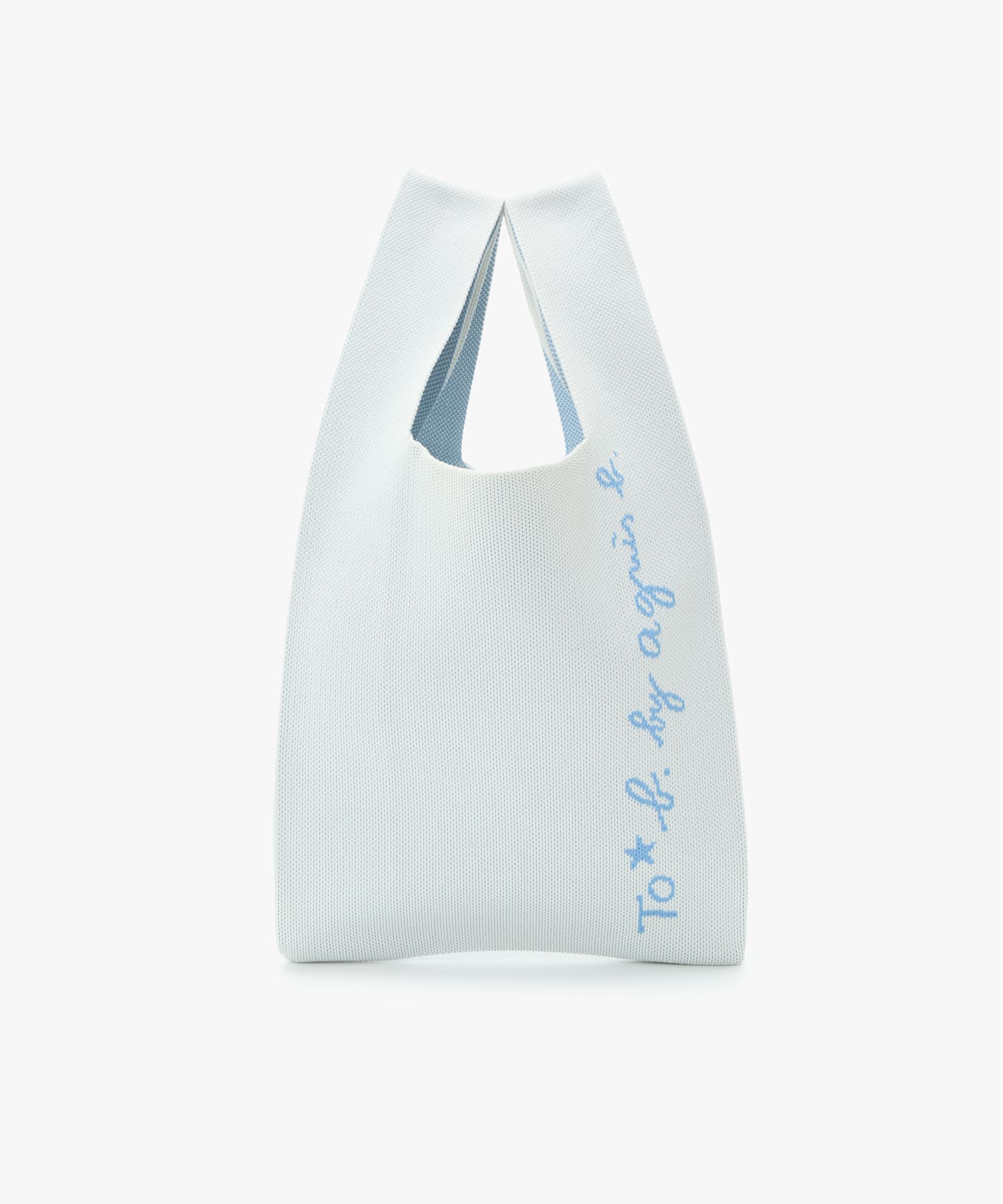 シンプルなロゴ入りのニットバッグ。
