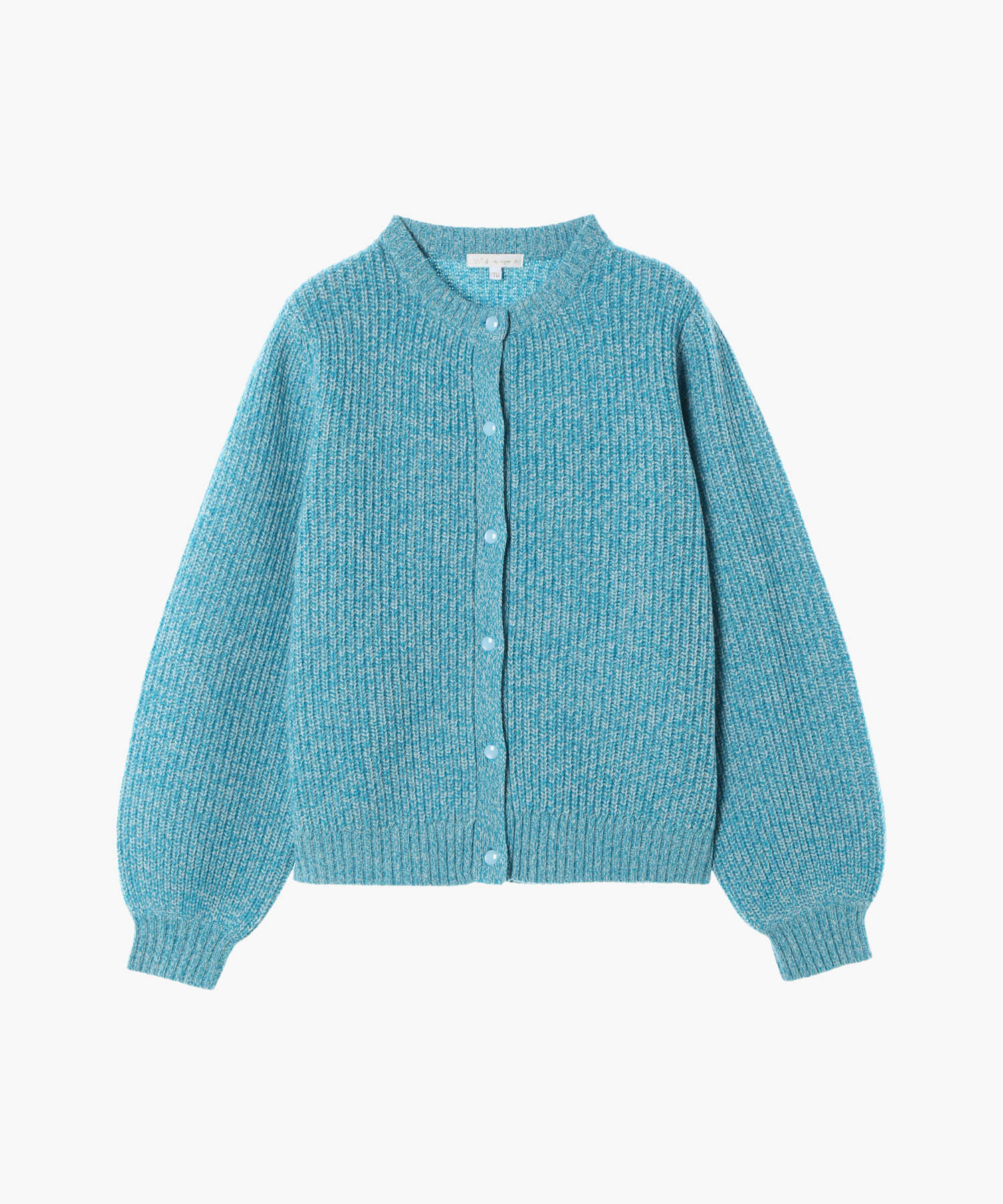 3色でMIXした糸がポップな印象のニットカーディガン。