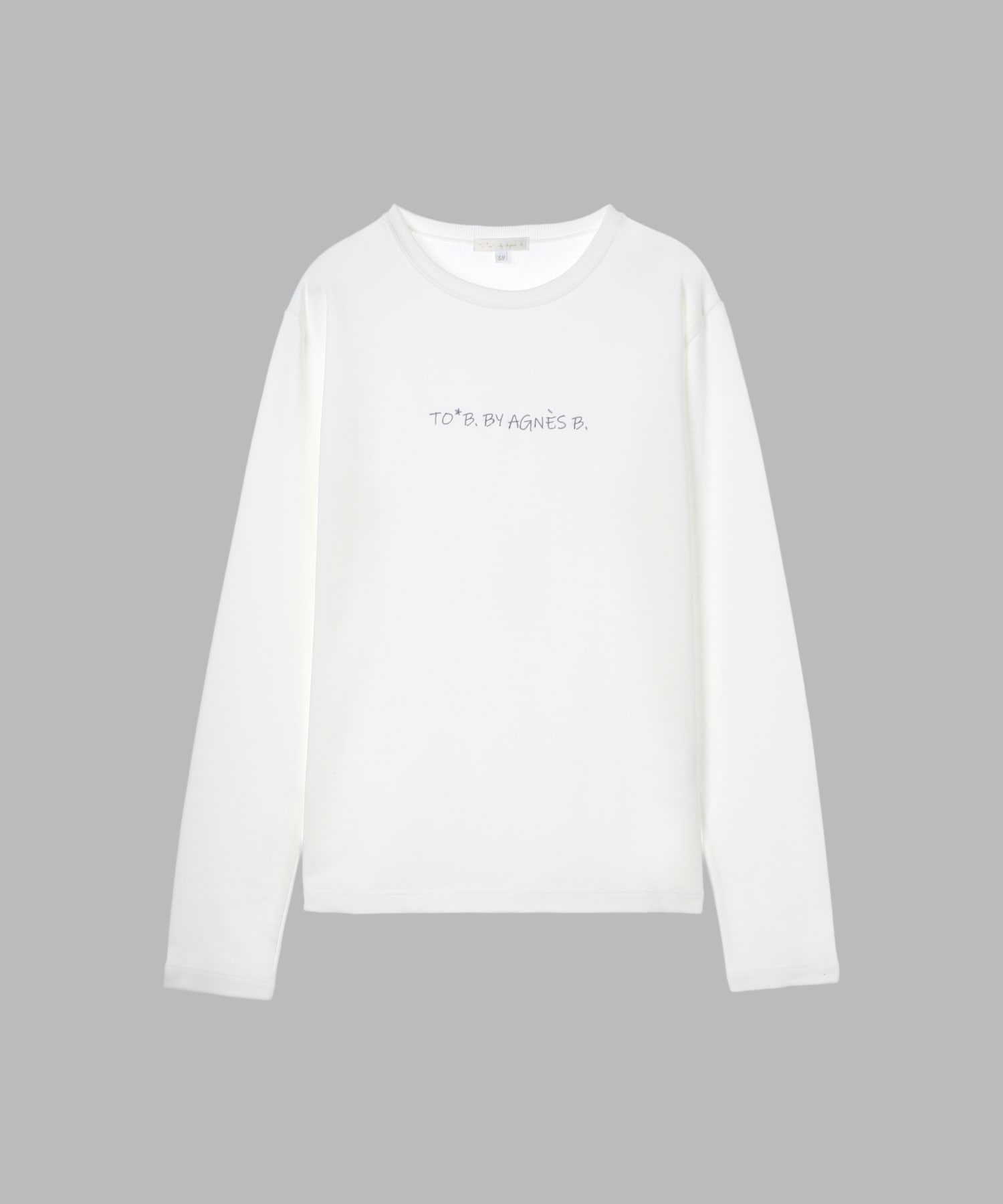 さりげなくポイントになるような配色のロゴ刺繍が施された長袖トップス。