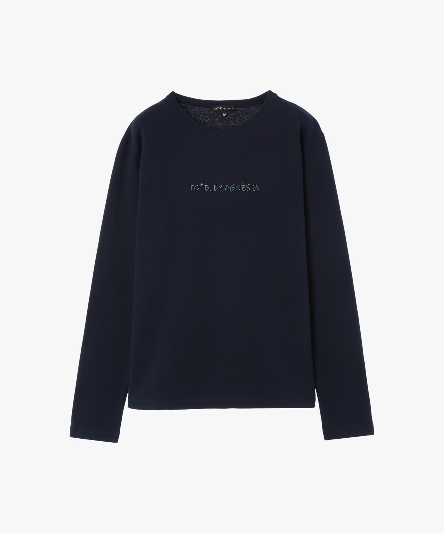 さりげなくポイントになるような配色のロゴ刺繍が施された長袖トップス。