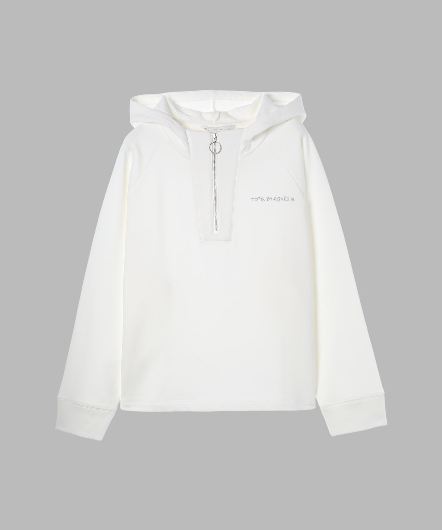 ゆったりとしたシルエットの裏毛素材のハーフジップフーディー。