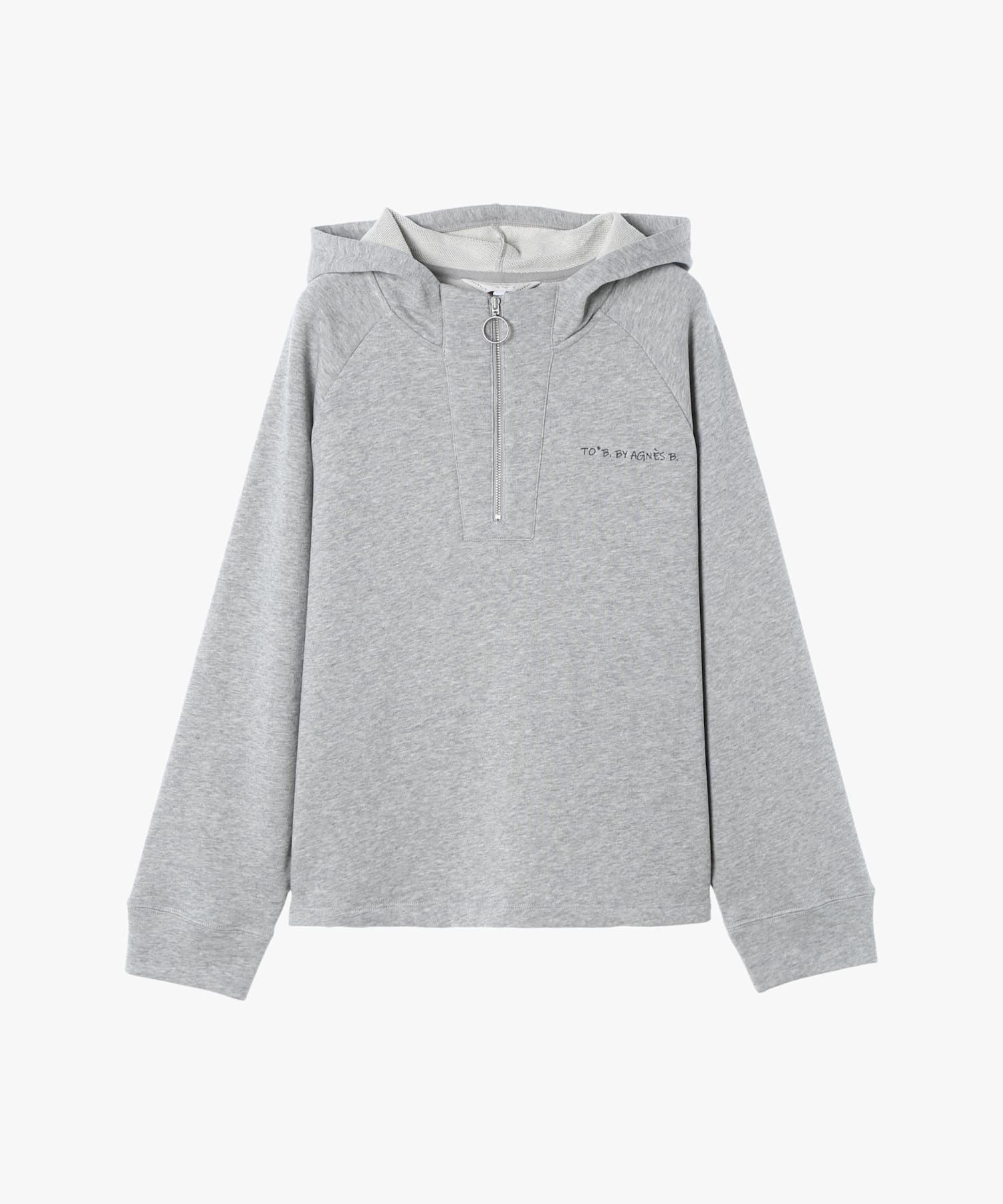ゆったりとしたシルエットの裏毛素材のハーフジップフーディー。