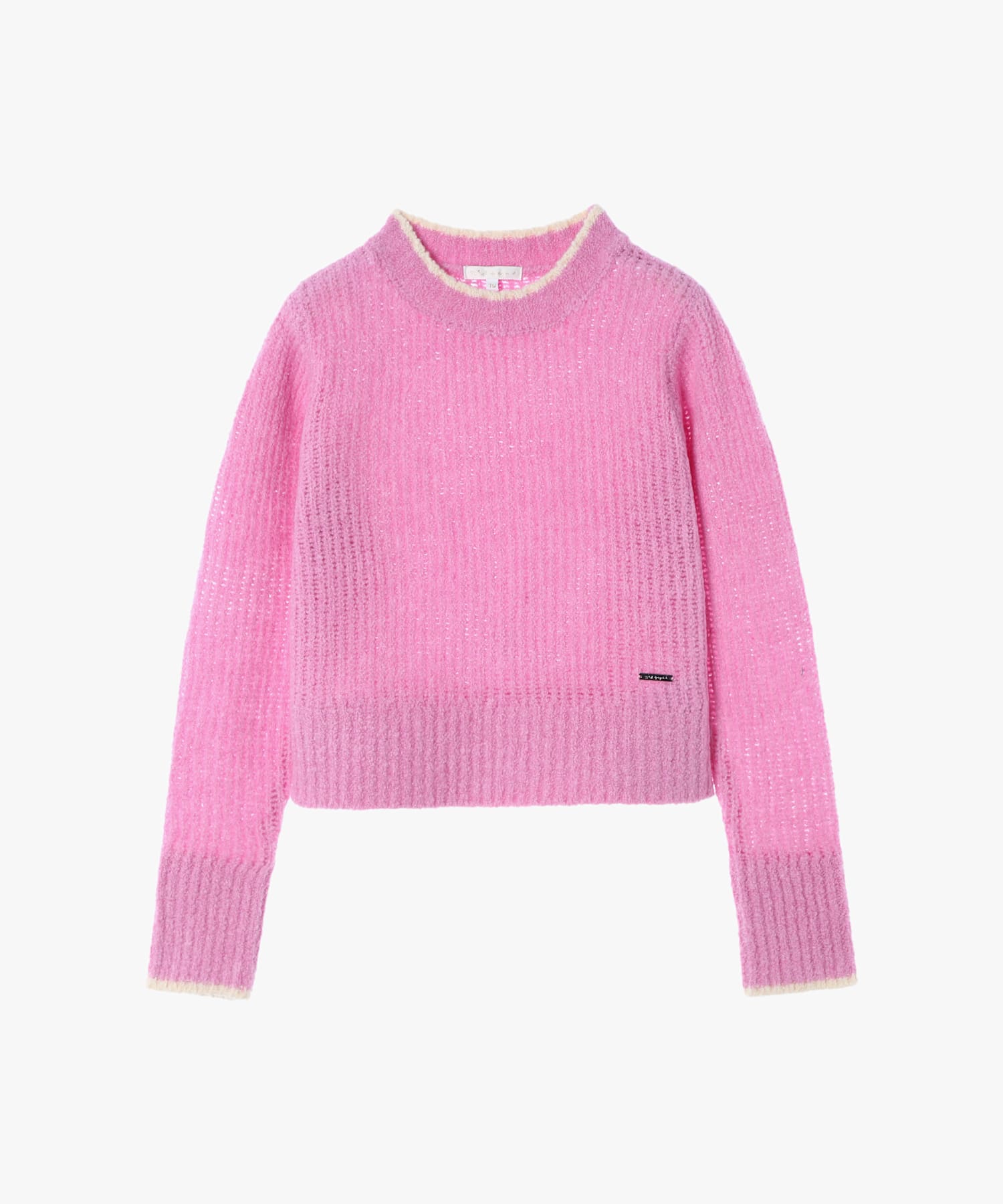 短めの着丈にボックスシルエット、衿ぐりと袖口に入ったバイカラーがスタイリングにメリハリ感をプラスし、1枚ではもちろんシャツ合わせも可愛いです。