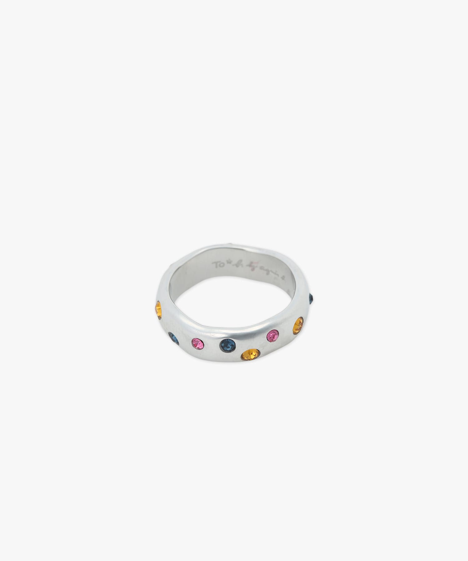 マルチカラーのビジューが指先に華やかな彩りを添えるリング。