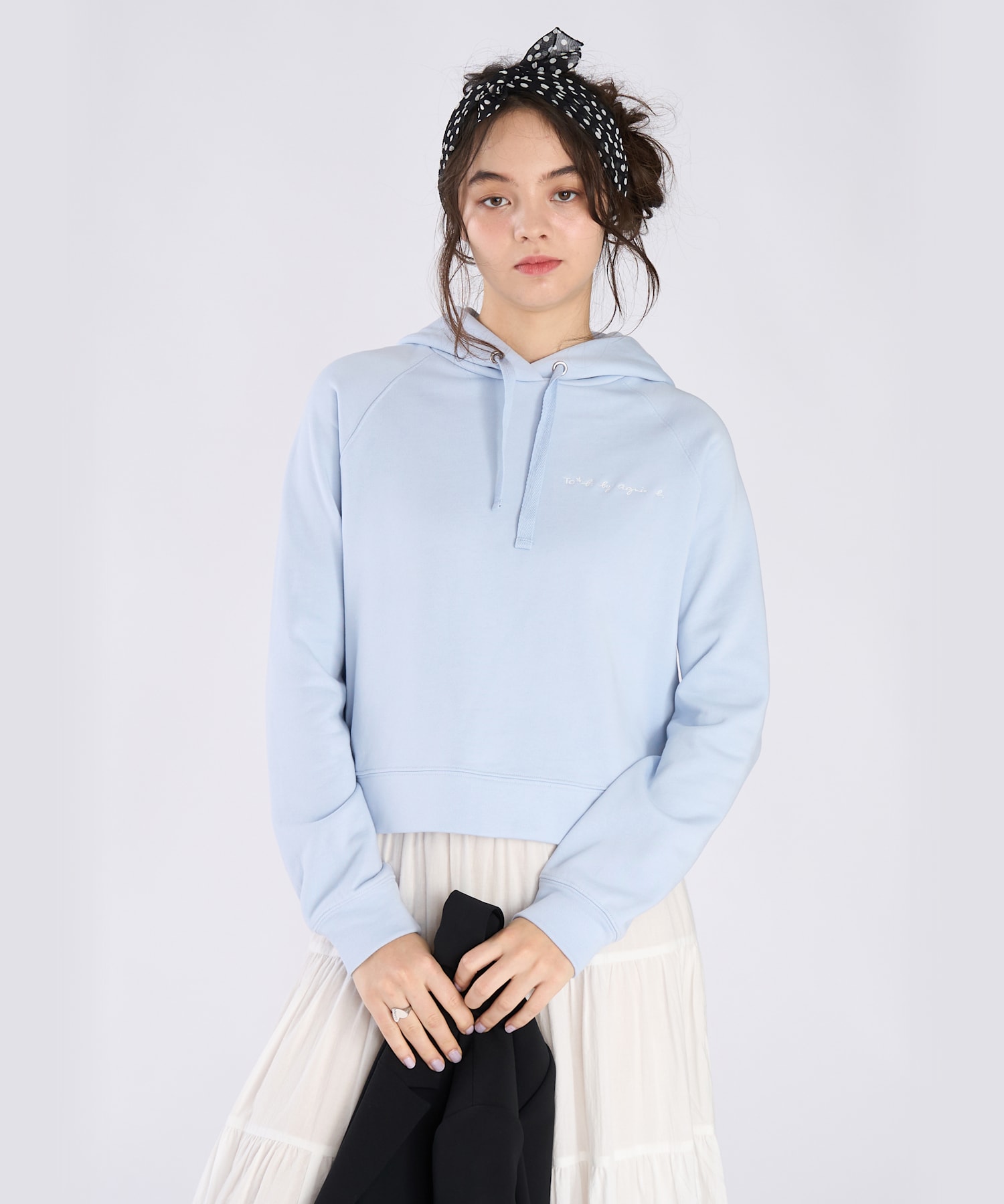 フロントの左胸に「To b. by agnes b.」の刺繍が入っているロゴフーディー。