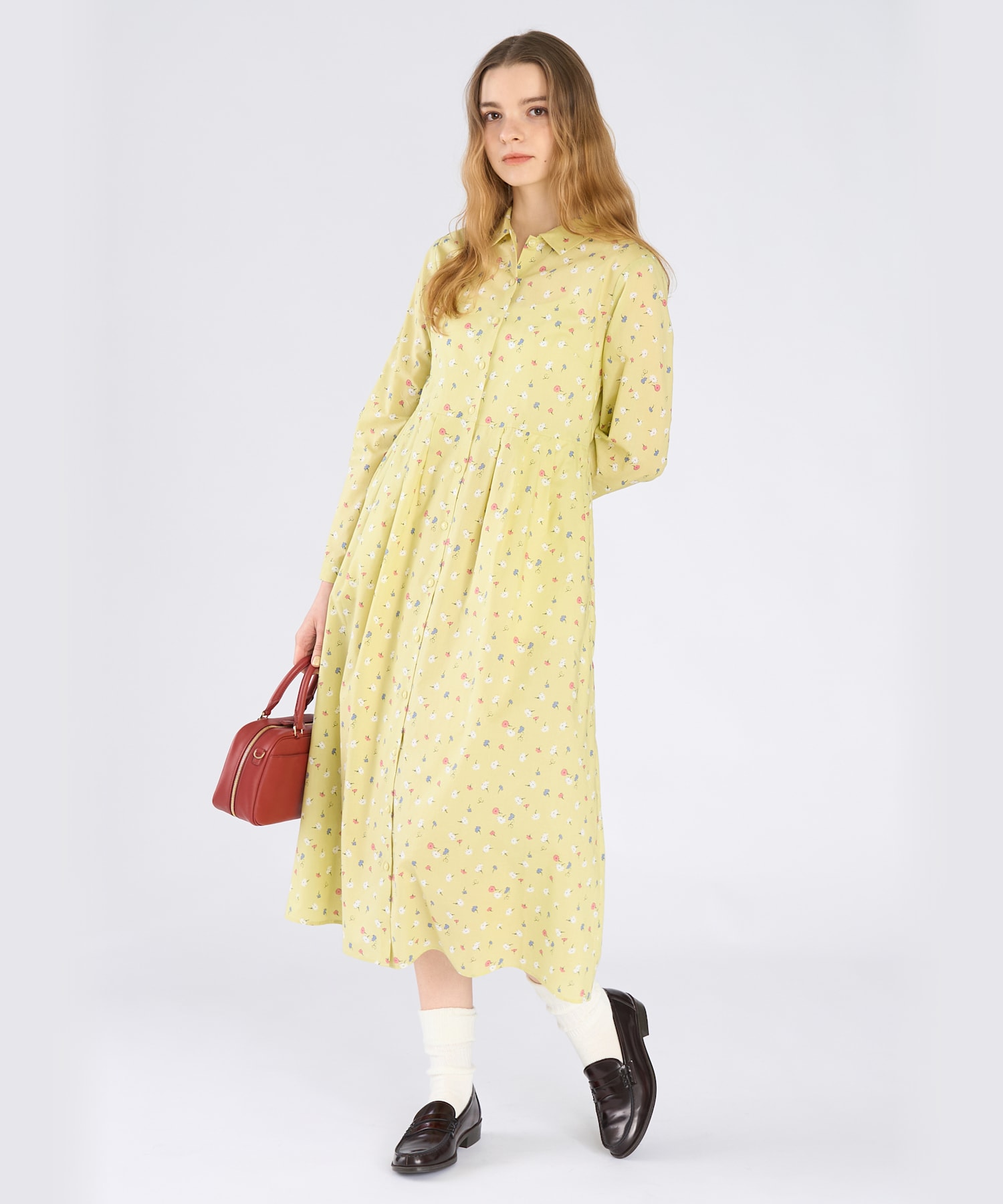 フラワープリント コットン 長袖 ワンピース