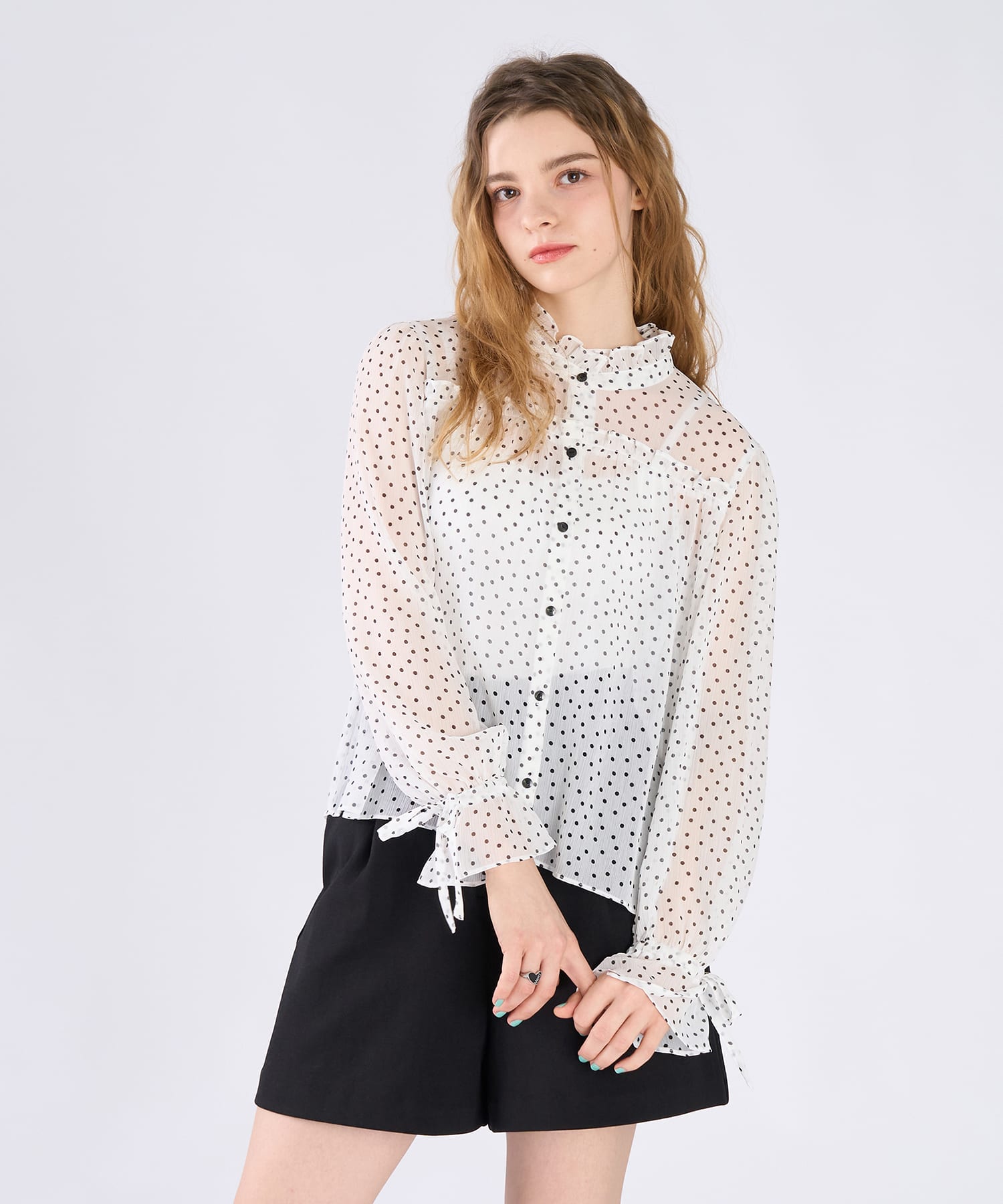 一枚で華やかな着こなしが叶うドットギャザーブラウス。