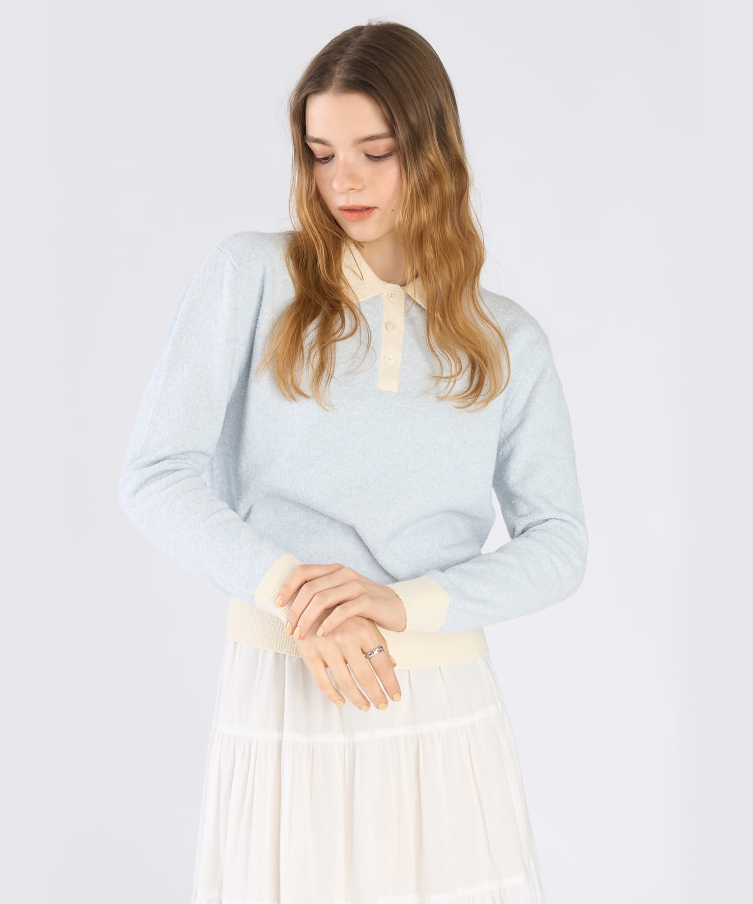 肌当たりが柔らかく気持ちの良い素材をセレクトし、デイリー使いしやすいポロニットに仕上げました。