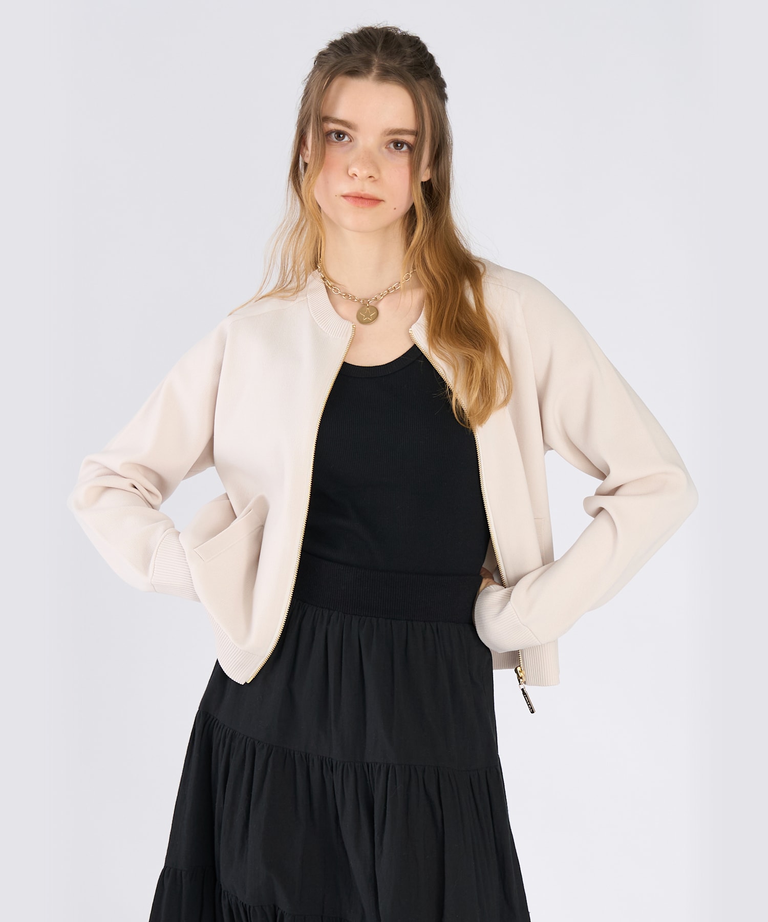 ポリエステルでしっかり編み込んだキレイめな風合いとゆったりとしたサイズ感でインナーを選ばず羽織れるブルゾン。