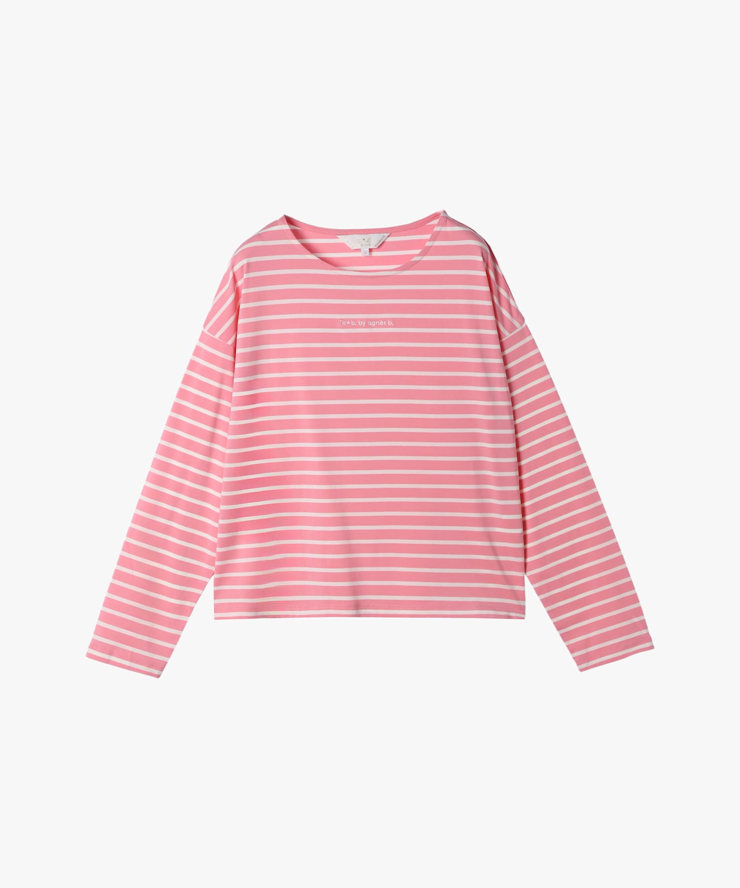 ロゴ刺繍がポイントのボーダーロングTシャツ。