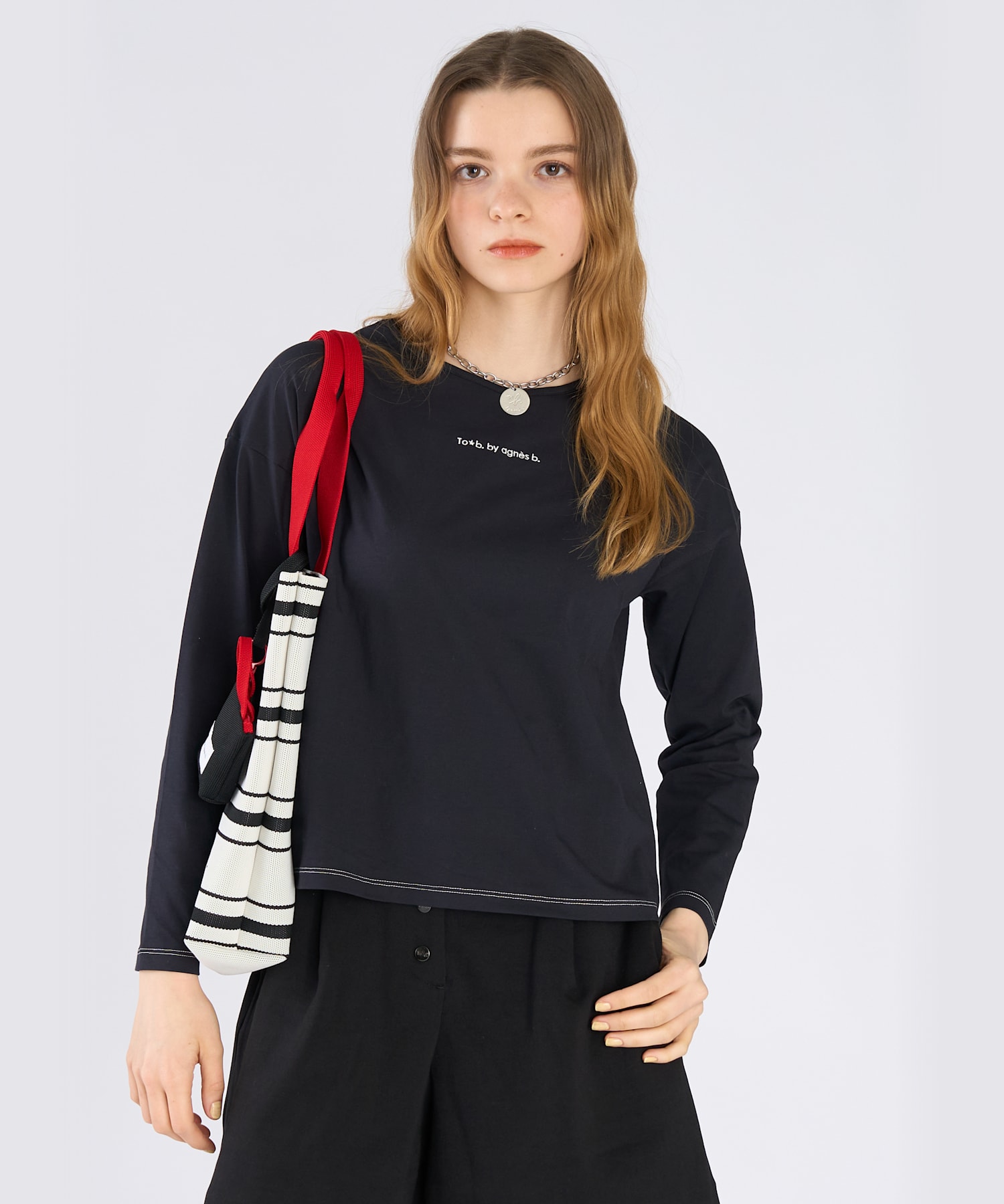 配色のロゴ刺繍&ステッチがポイントのロングTシャツ。
