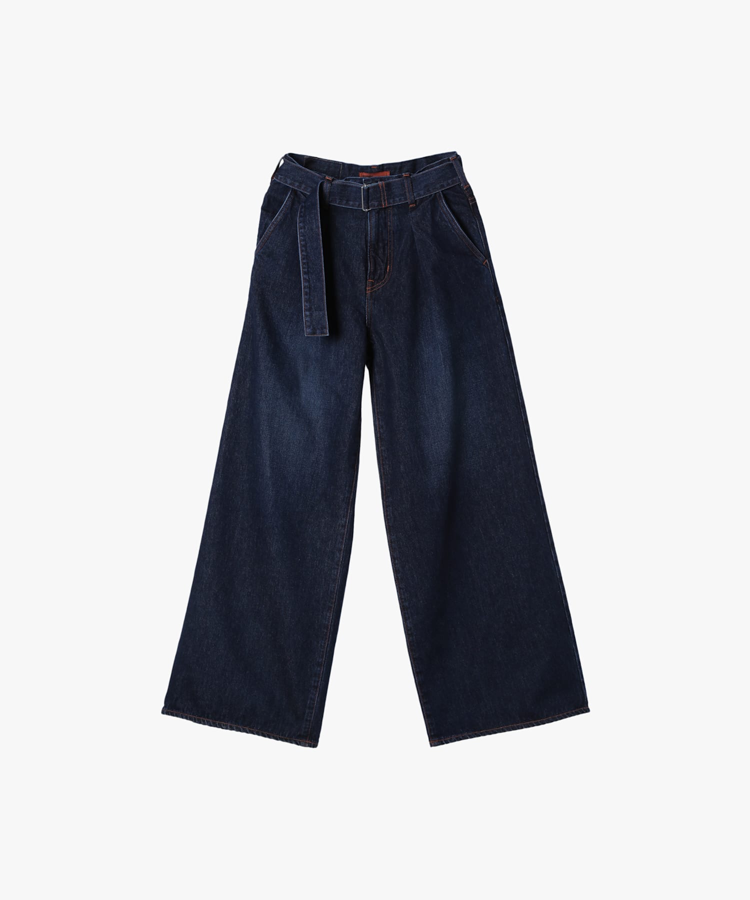 タックの入ったワイドパンツに、デニムのベルトが付属でついています。