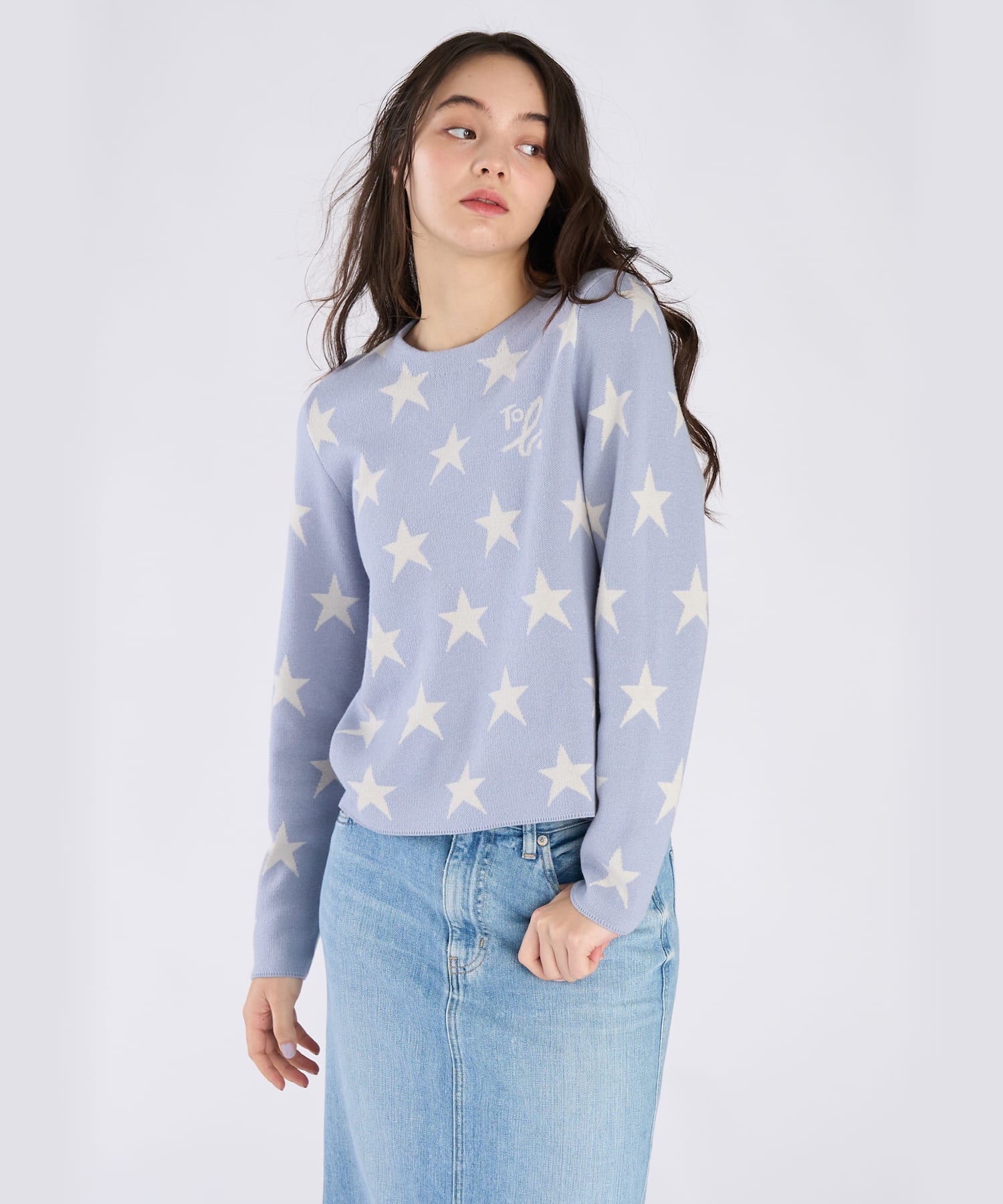 左の胸にTo b.のロゴをいれた星柄ジャガードのニットプルオーバー。