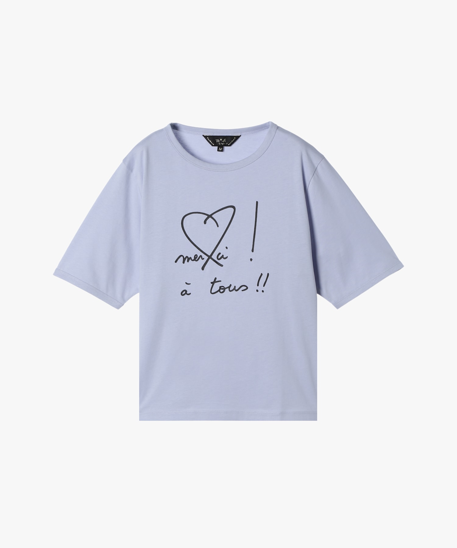 人気のアニエスメッセージ「merci! a tous!!(ありがとう!みんな!!)」のプリントが施された半袖Tシャツ。