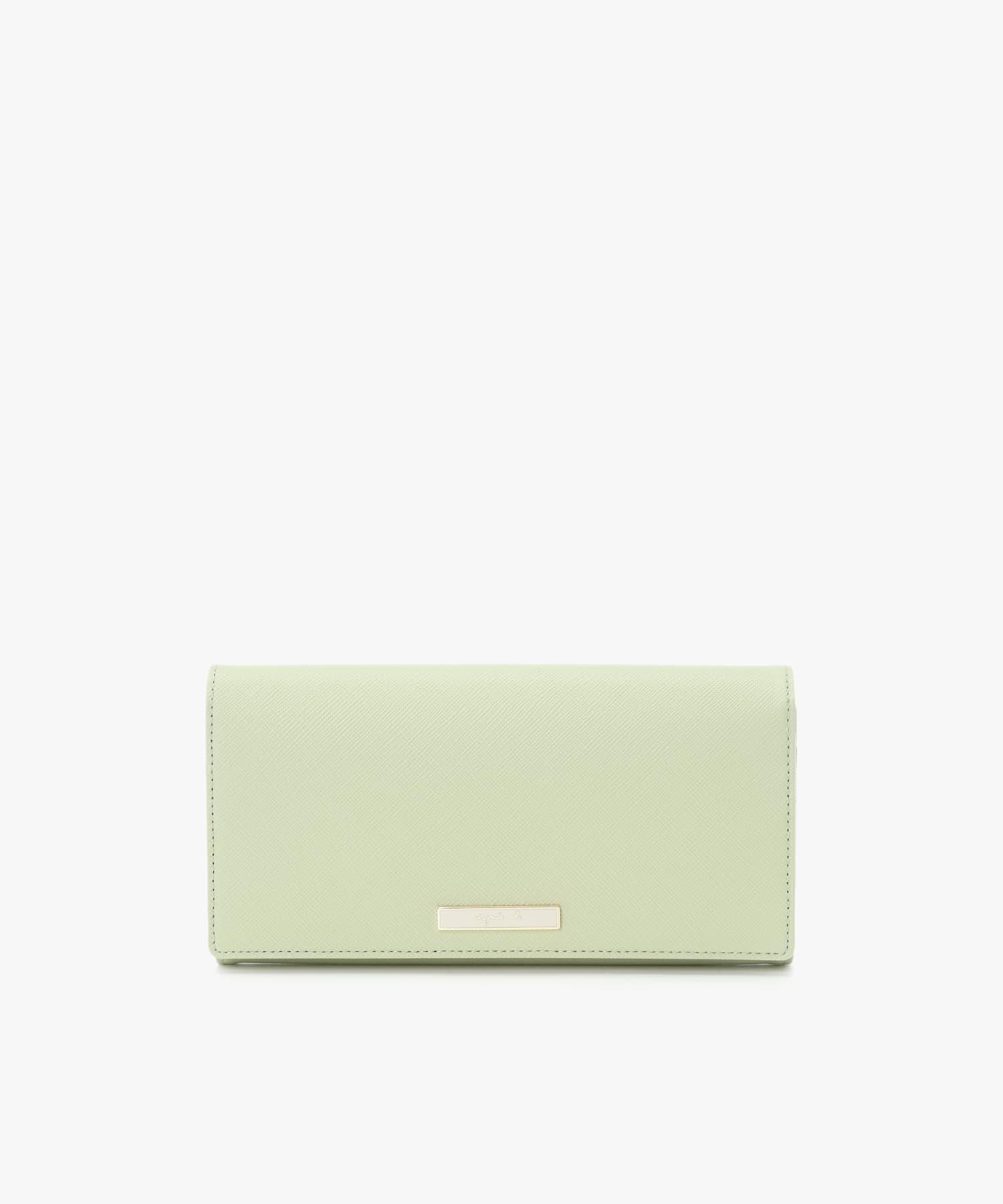 ライトゴールドを効かせたロゴプレートがポイントのフラップタイプのロングウォレット。
