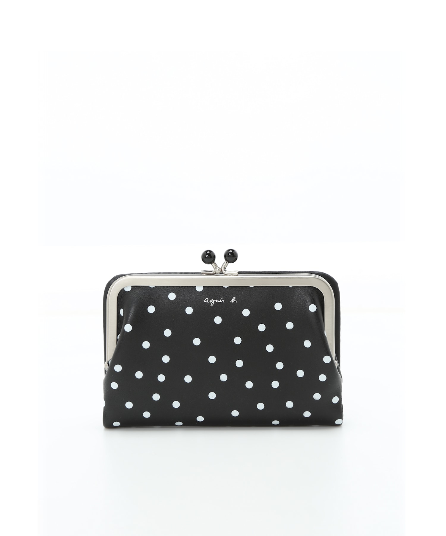 触り心地の良いソフトレザーを使用した、ドット柄がアクセントのがま口デザインのウォレット。