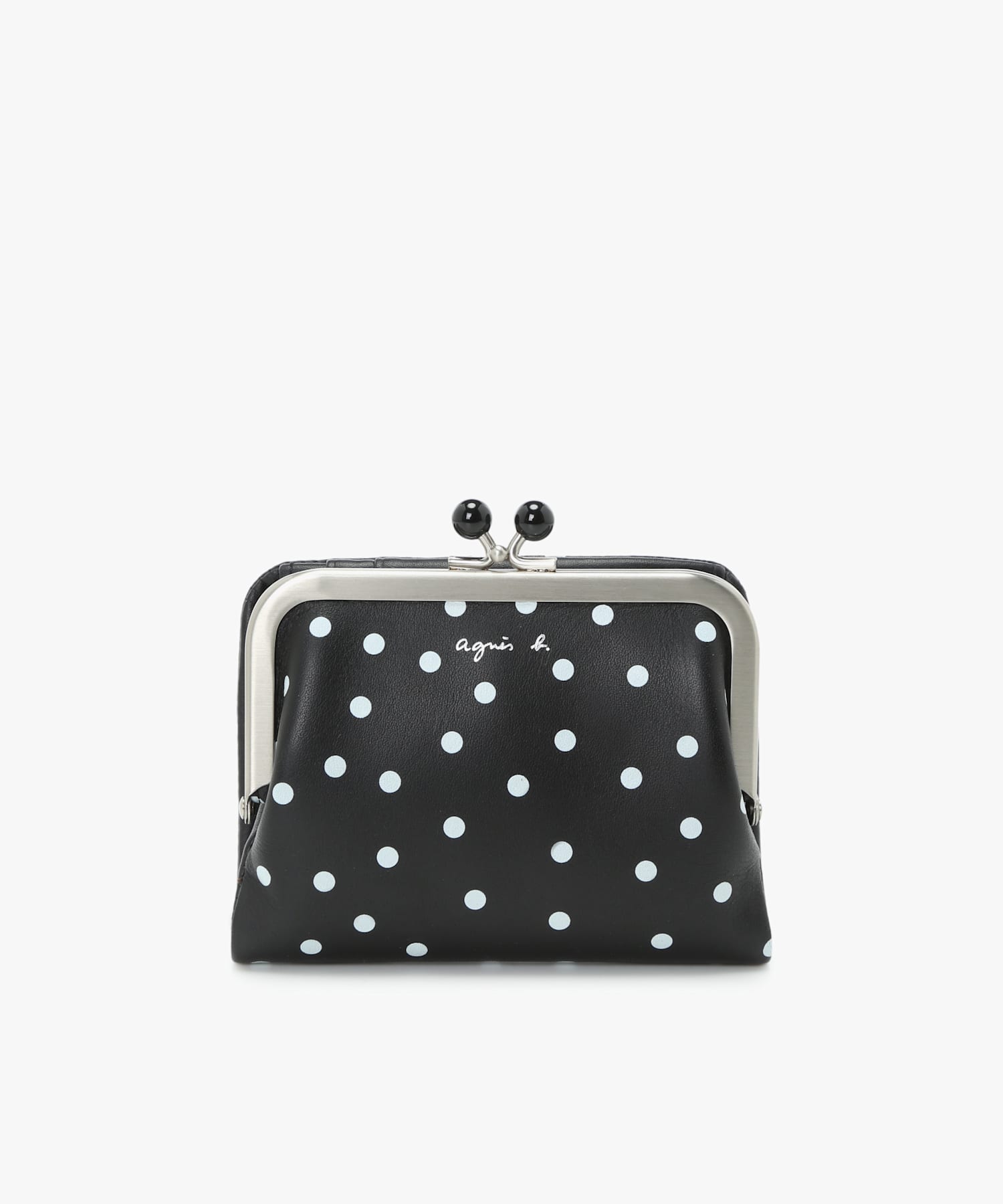 触り心地の良いソフトレザーを使用した、ドット柄がアクセントのがま口デザインのウォレット。