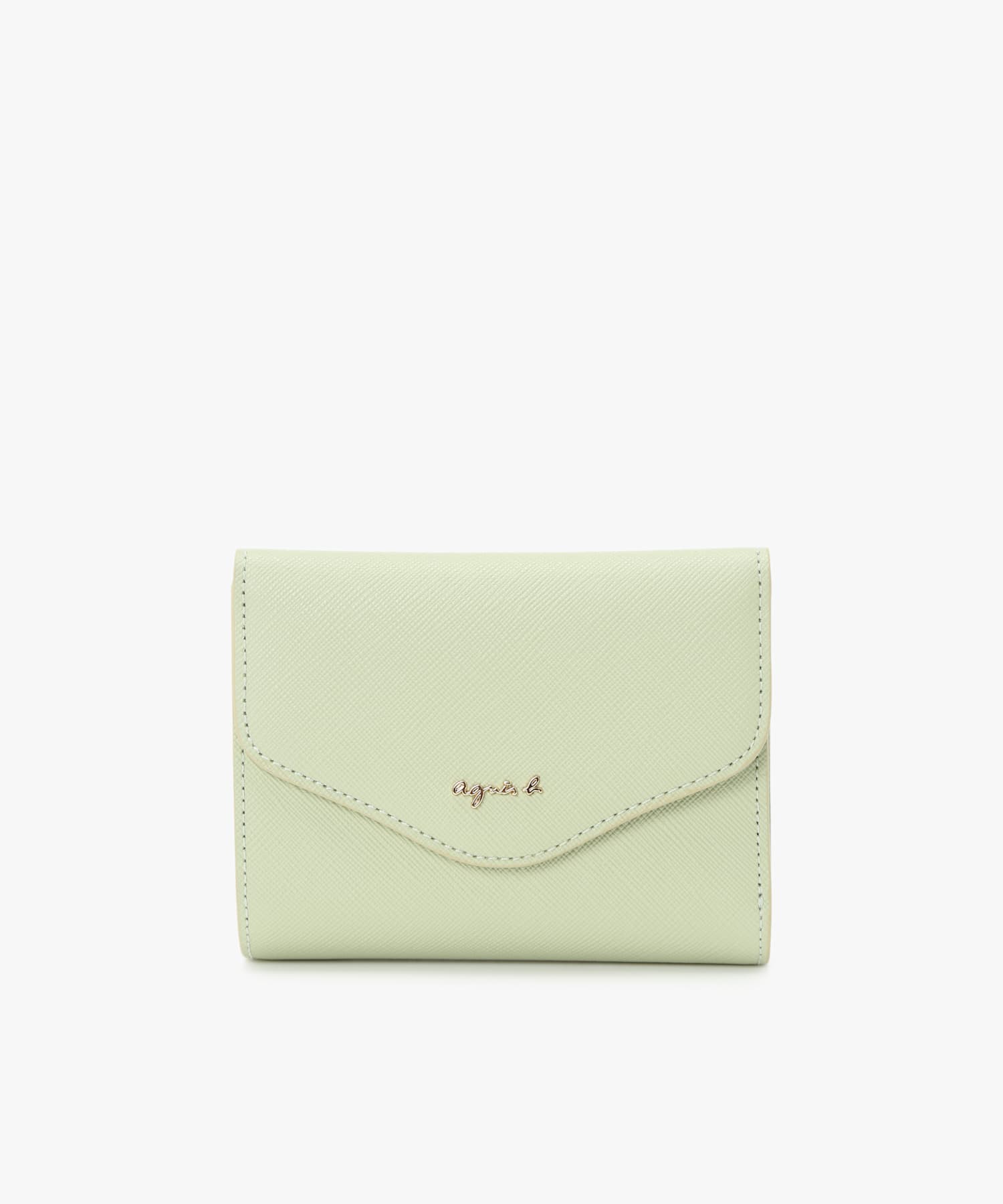 さりげなくロゴが施されたエンベロープ調のフラップが、クラシカルでフェミニンなレザー3つ折り財布。