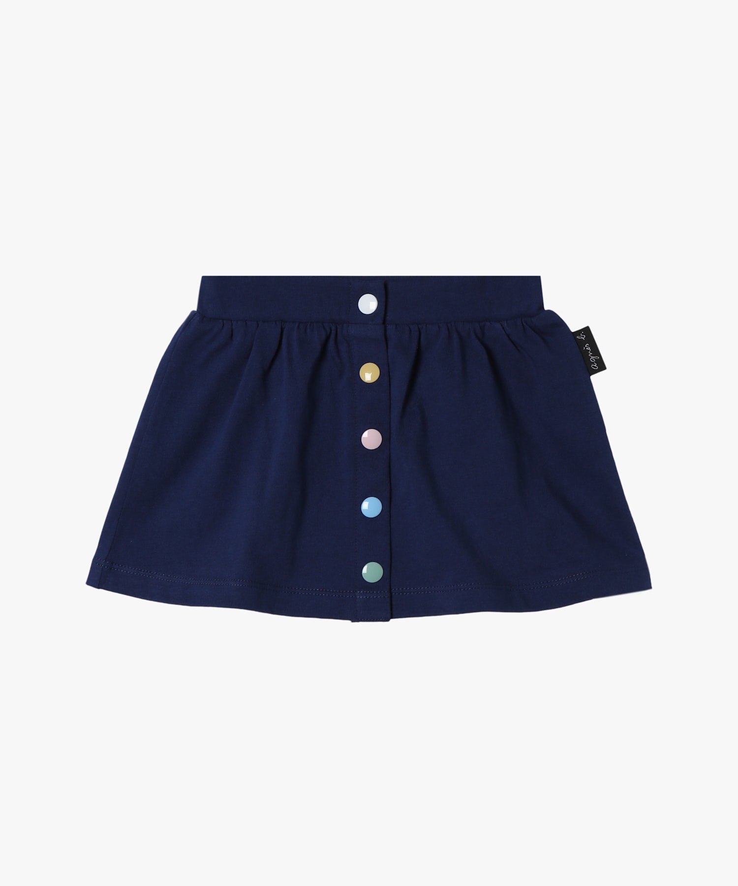 アニエスベー定番のカーディガンプレッションのように配したカラフルなボタン使いがポイントのスカート。