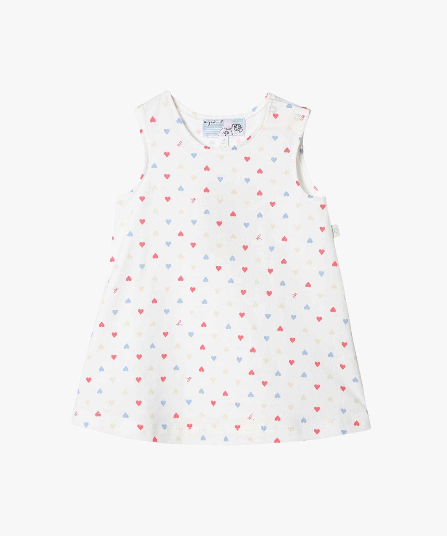 オリジナルのハートの総柄プリントのノースリーブワンピース。