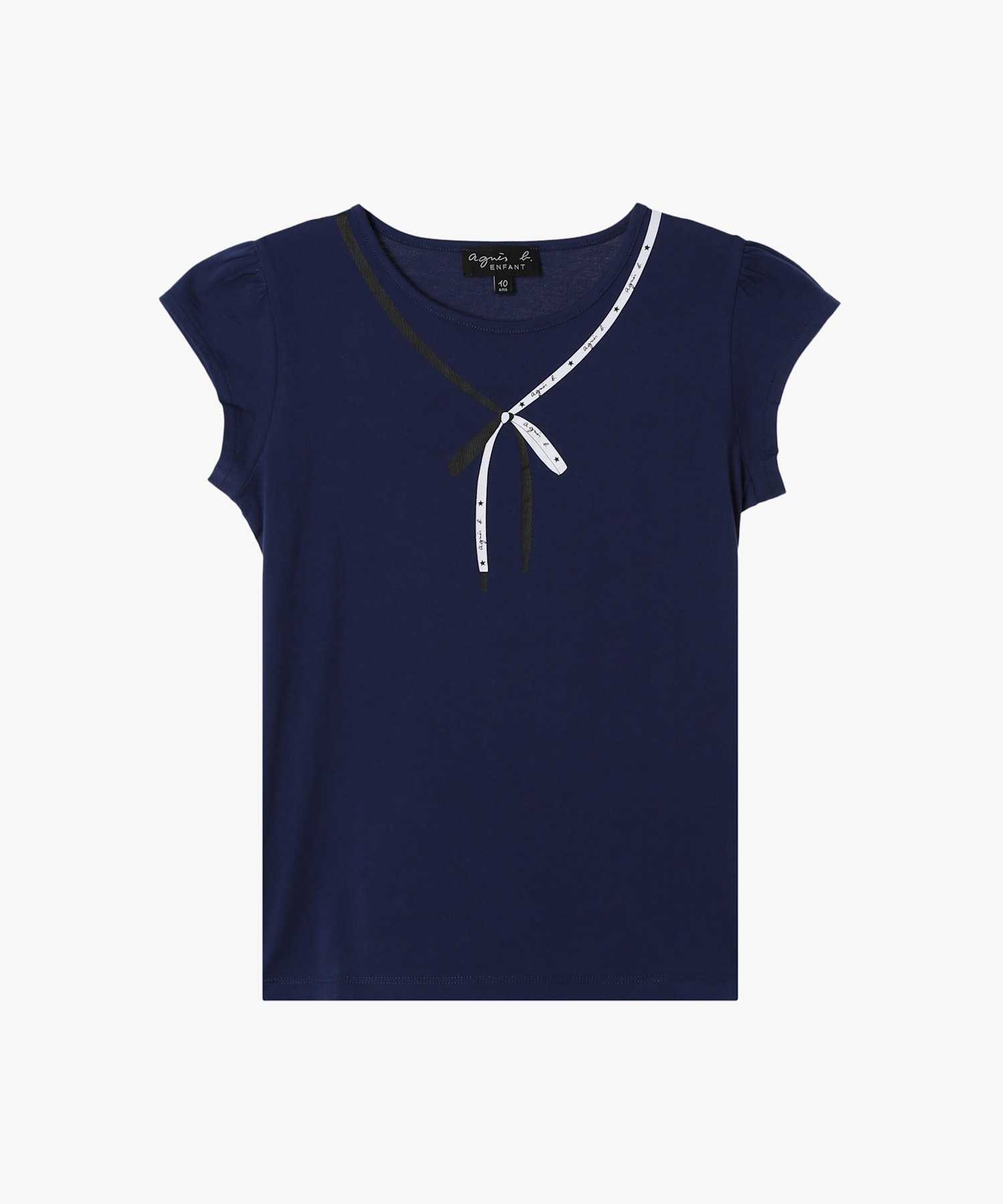 キッズ リボン プリント コットン 半袖 Tシャツ "Iris"