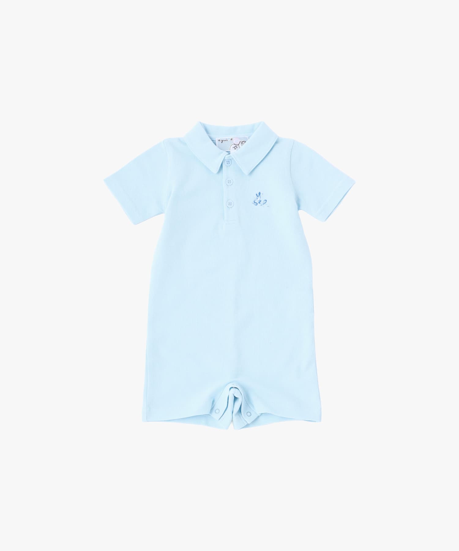 少しきちんと感が出て、さらっとした着心地の良さが夏のお出かけにぴったりな鹿の子のポロシャツロンパース。