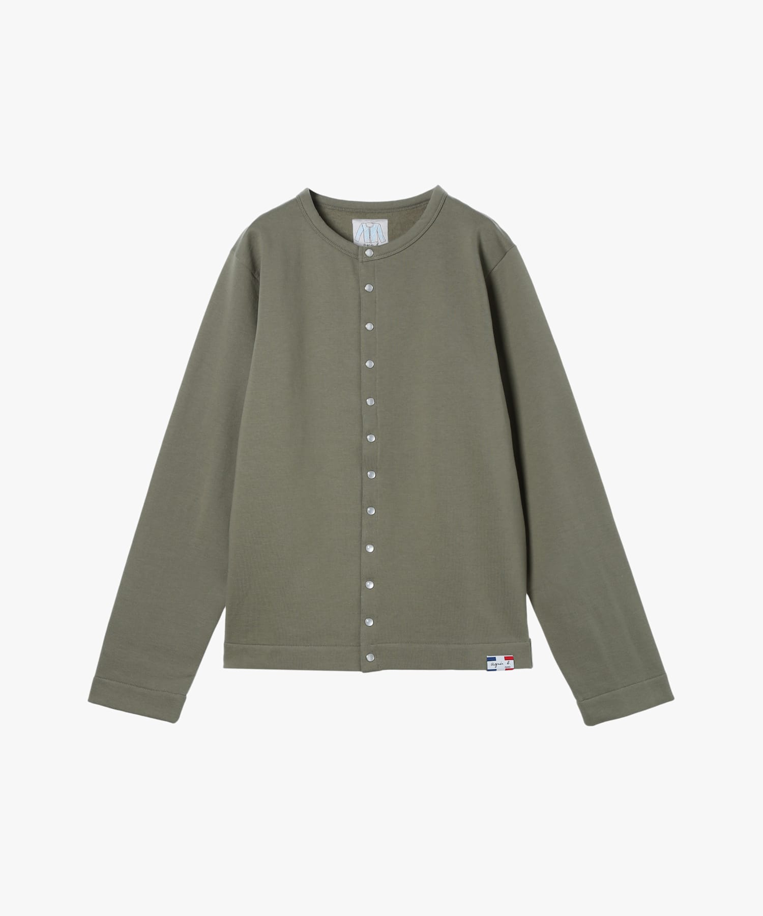 メンズ オーガニックコットン メルトン 長袖 カーディガンプレッション "Nacre" [Made in France]
