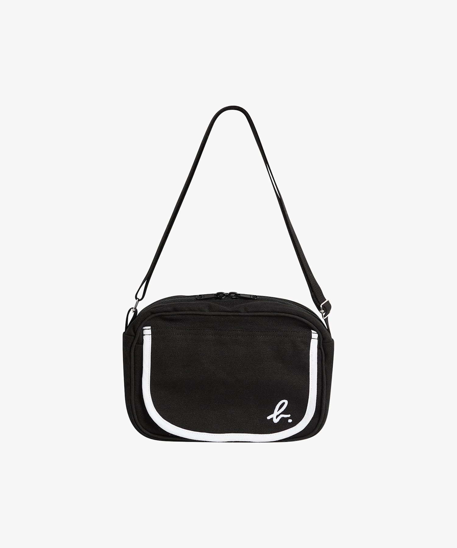 "b."ロゴとフラップポケットのパイピングがアクセントになったサコッシュ。