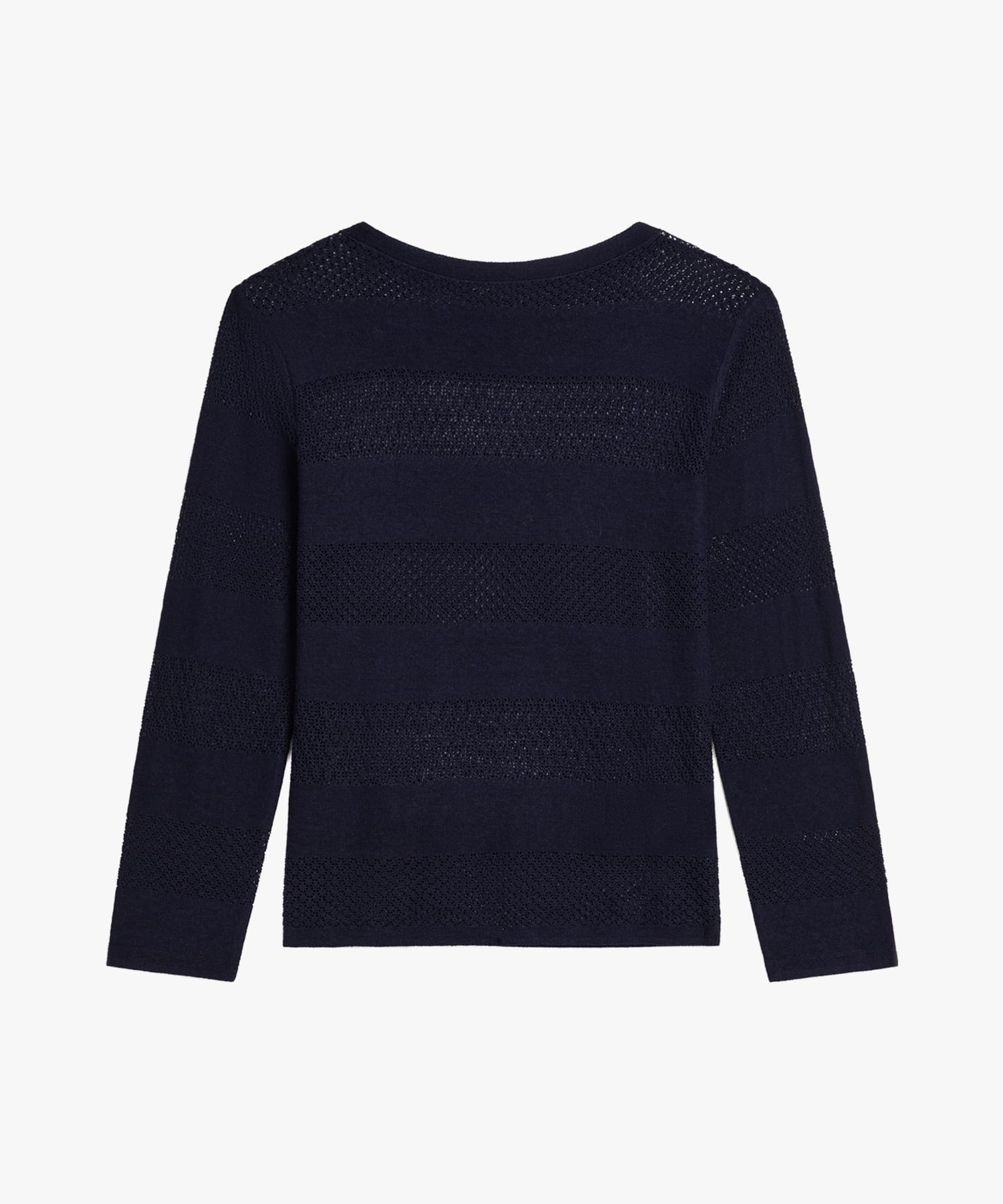 透かし編み ボーダー ボートネック 長袖 ニット プルオーバー