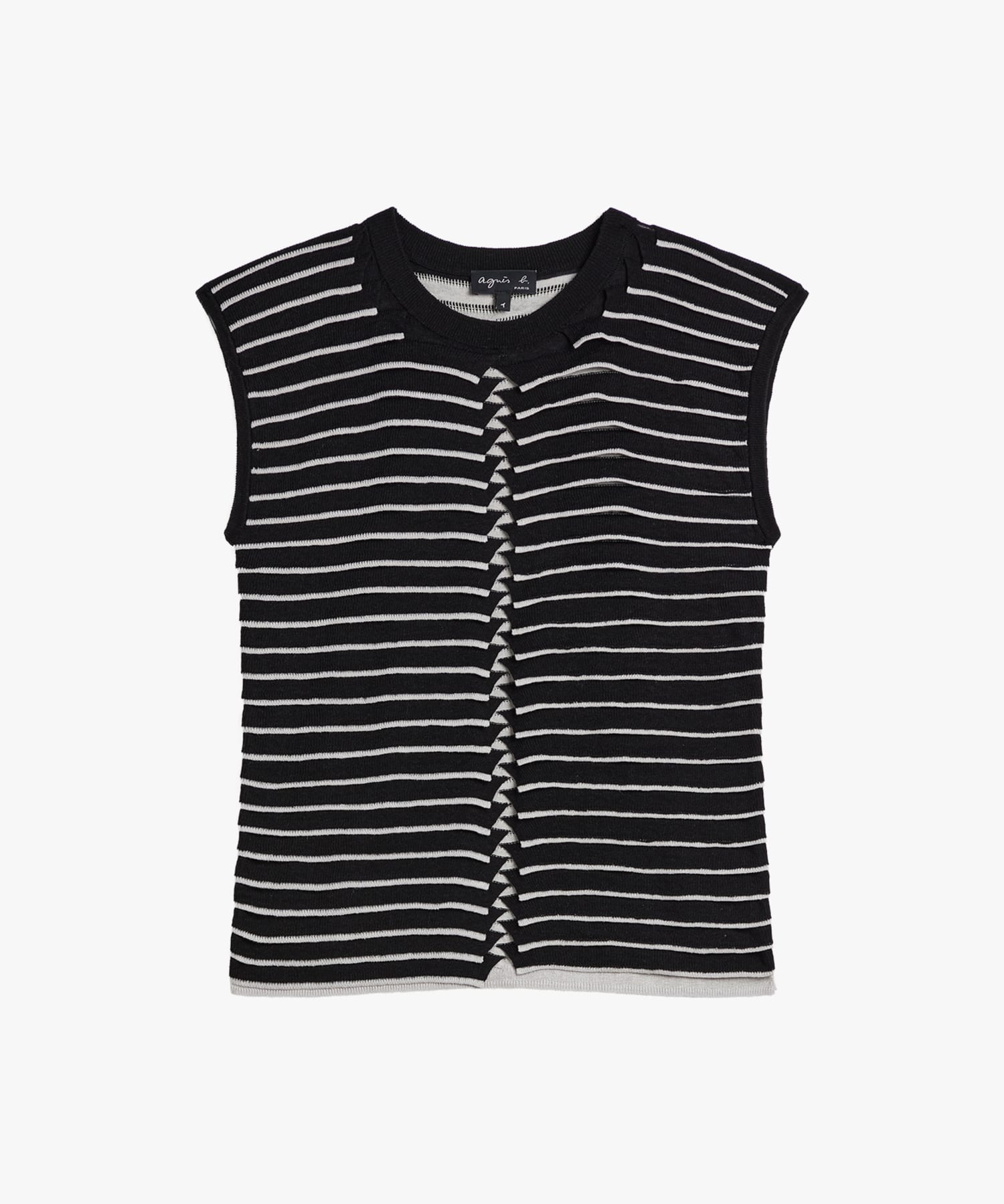 ボーダー シルク リネン ノースリーブ ニット プルオーバー "Charleston"