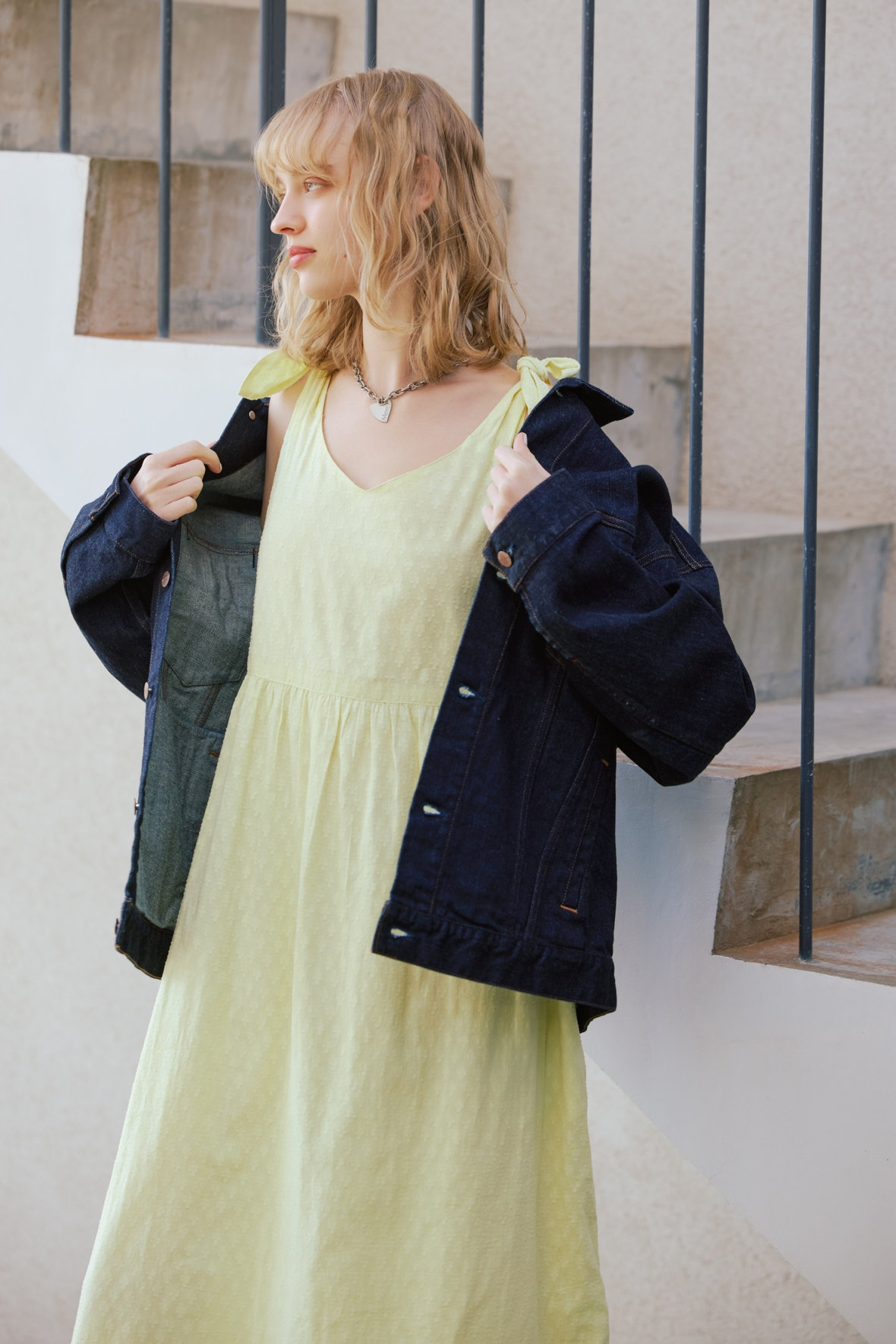 シンプルなスタイリングに軽やかな動きを生み出し、