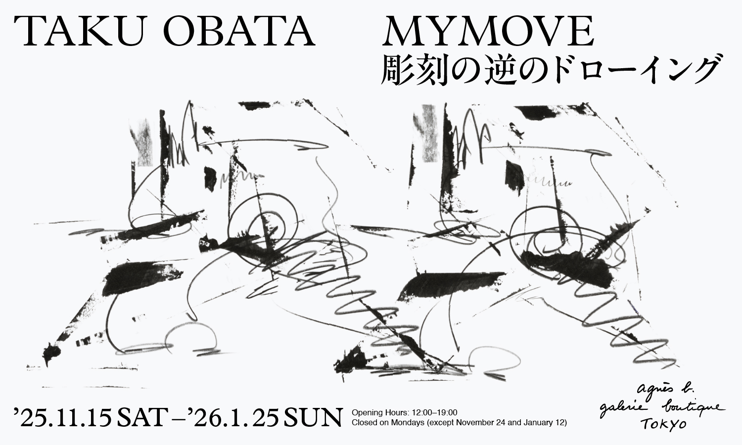 agnès b. galerie boutique is pleased to present MYMOVE – Drawing as the Opposite of Sculpture: Representing Sculpture Beyond Sculpture, a solo exhibition by Taku Obata, on view from Saturday, 15 November 2025 to Sunday, 25 January 2026.