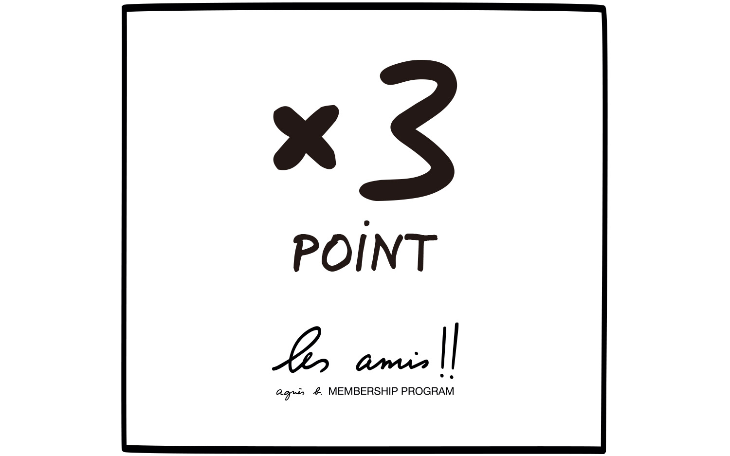 POP-UP期間中、アニエスベーメンバーシップ “Les amis!!” のポイントを通常の3倍プレゼントいたします。